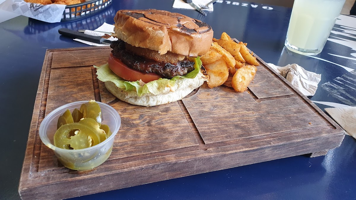 Azul Restaurant Bar sits at Estadio BBVA Bancomer on Avenida Pablo Livas in Guadalupe, N.L., Mexico. This bar and grill is popular with 1221 reviews, serving a variety of menu items such as Torre de Mariscos, Tacos de Arrachera, Guacamole And Chips And Salsa Verde, Hamburguesa la Capitana, and Rayaburger. The selection includes seafood, grilled meats, and creative burgers that appeal to a wide audience.