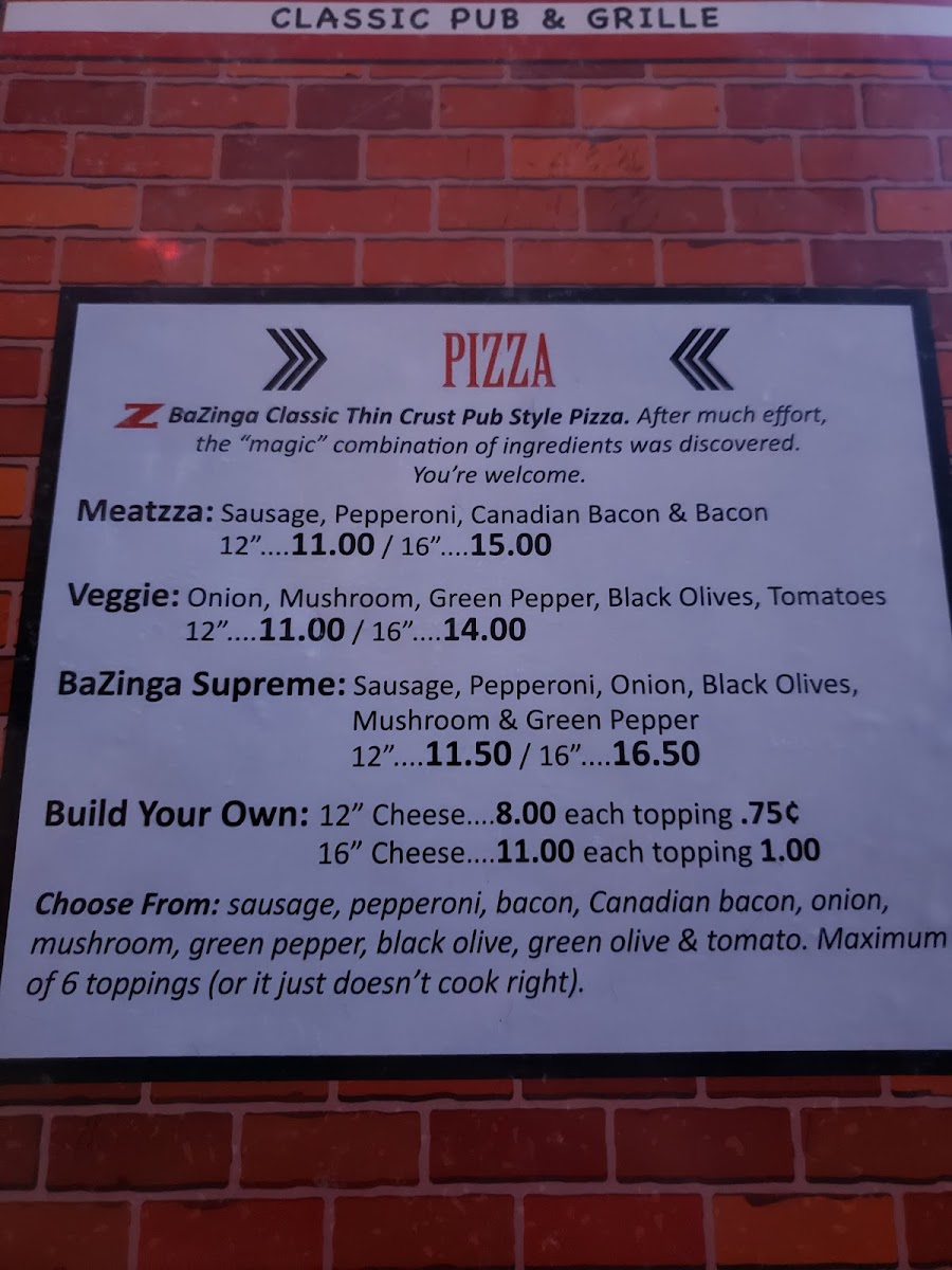 EACH TOPPING $1.50. CHOOSE FROM: SAUSAGE, PEPPERONI, BACON, CANADIAN BACON, ONION, MUSHROOM, GREEN PEPPER, BLACK OLIVES, GREEN OLIVES, PINEAPPLE & TOMATO. MAX OF 6.