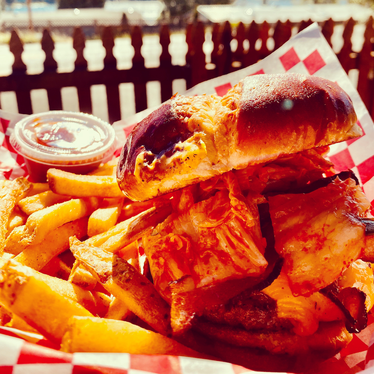 Very cool vibe. I liked the hotrod memorabilia and the decor, especially the galvanized ceiling I ordered the cheesesteak and upgraded from french fries to onion rings for an extra $2. It came with a small cup of coleslaw, which was also tasty. Friendly staff and everything tasted good. I sat in a booth with a view of Big Lake. There are picnic tables outside, so I can't wait to return in the summer