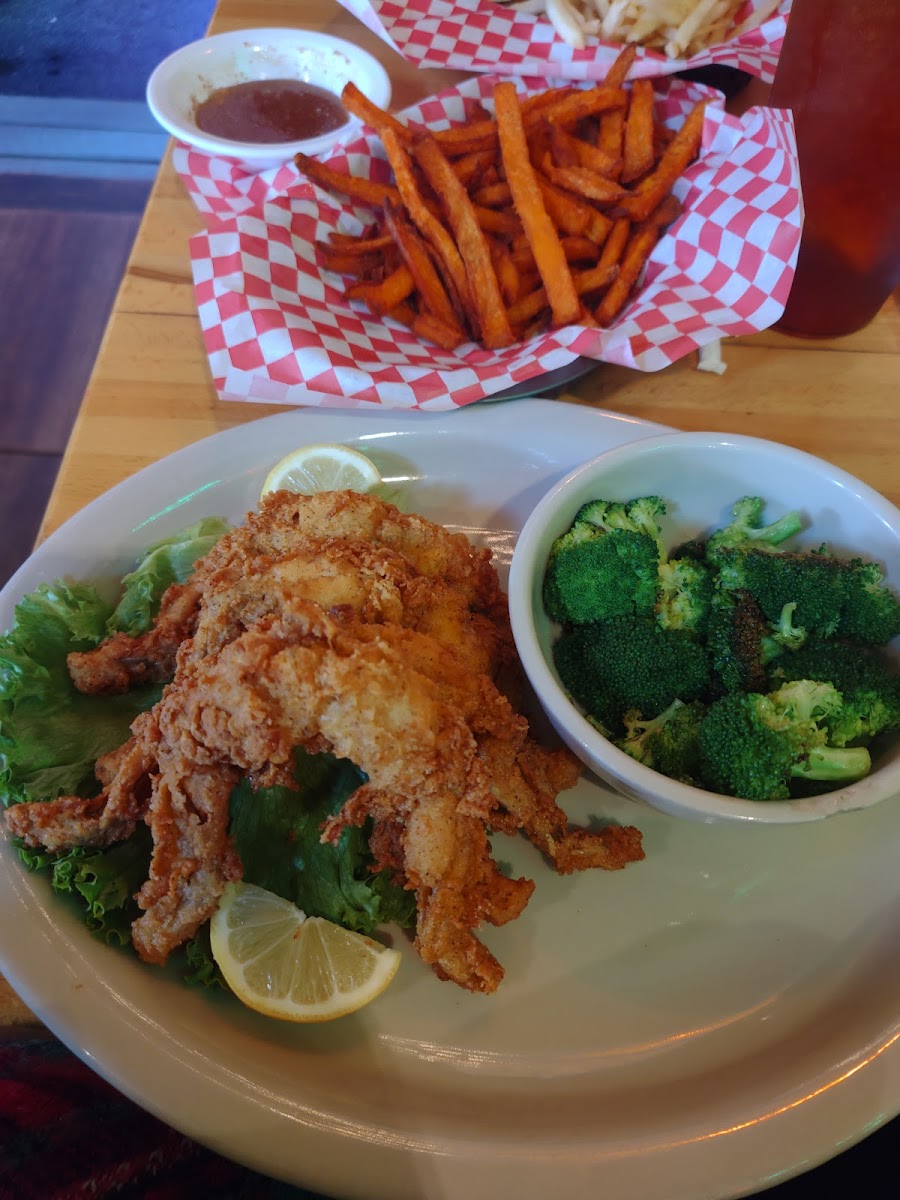 Been coming here for two years. The food is very good, and they have incredible weekly deals. The burgers are great and the best buns I’ve ever had! Tried the fried mushrooms made on site, and they were awesome. The fried catfish never disappoints. The service and atmosphere is the best in town.