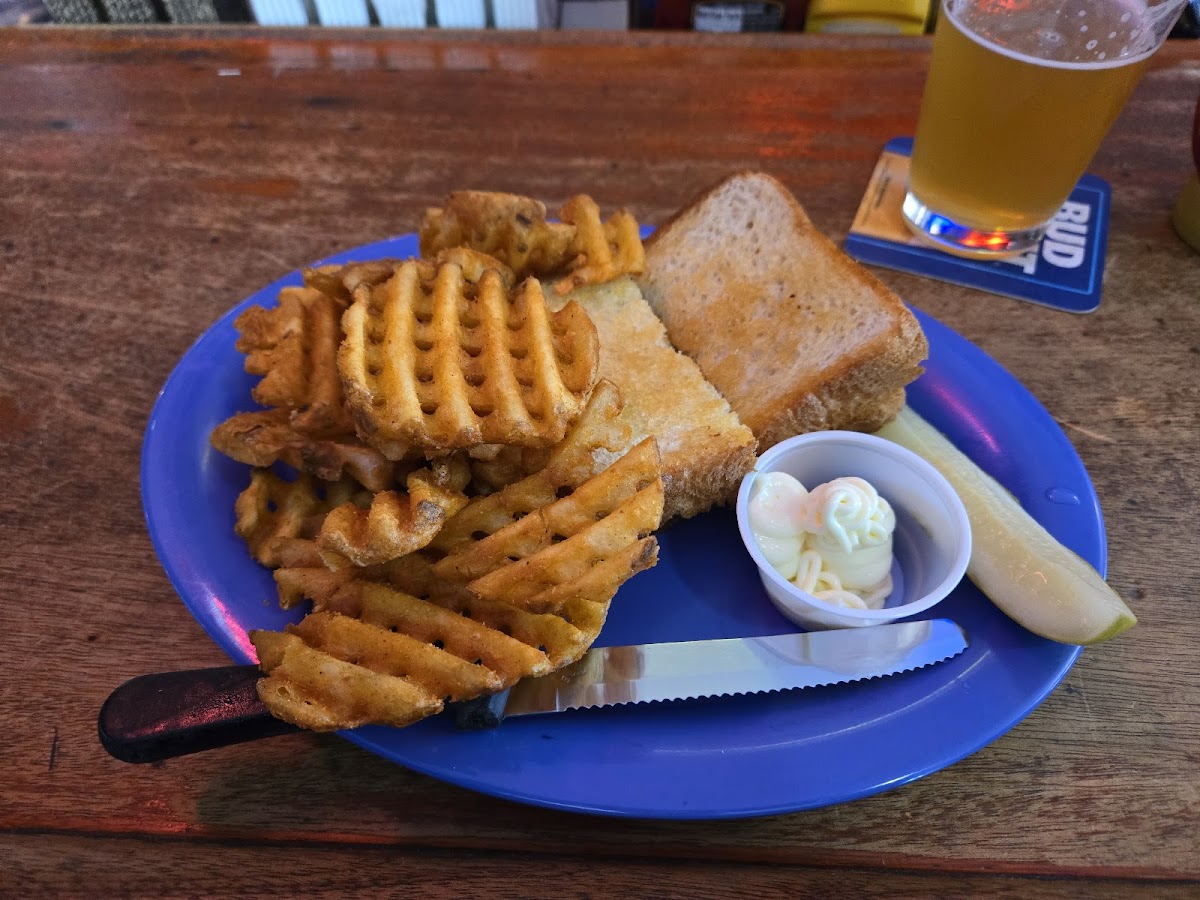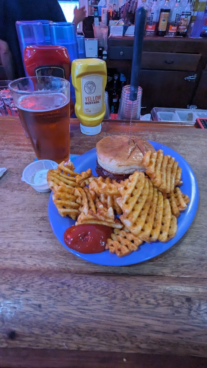 Your typical small town bar and grill. We arrived on a Saturday afternoon for a bite to eat. The place was not crowded, and we sat at the bar. They have four draft beers on tap. My wife and I ordered the daily special. It was a turkey sandwich on toast. I had waffle fries with mine. The food was good and the price was very reasonable. Our bartender was also attentive.