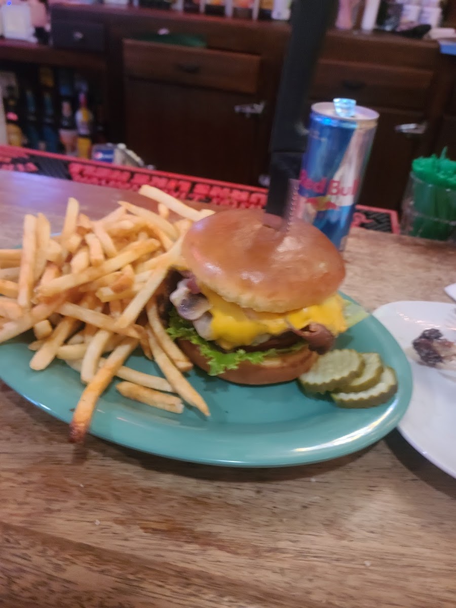 The atmosphere was great. The staff was friendly. The food was good, I had the mushroom Swiss it needed a little more flavor, it was a tad plain. The cheese curds were amazing!! I would totally eat there again. I gave it a 5 because the overall experience was wonderful! Thank you.