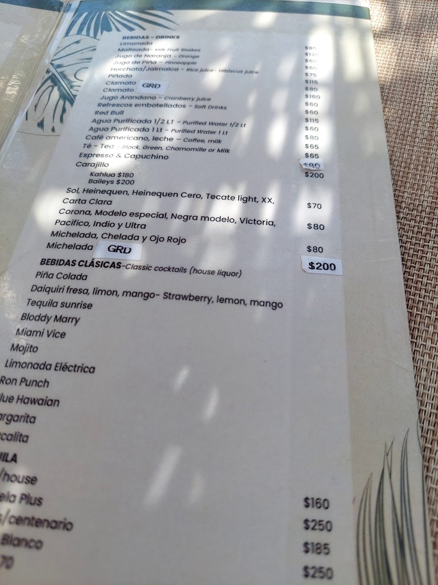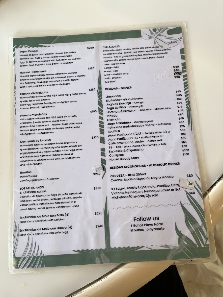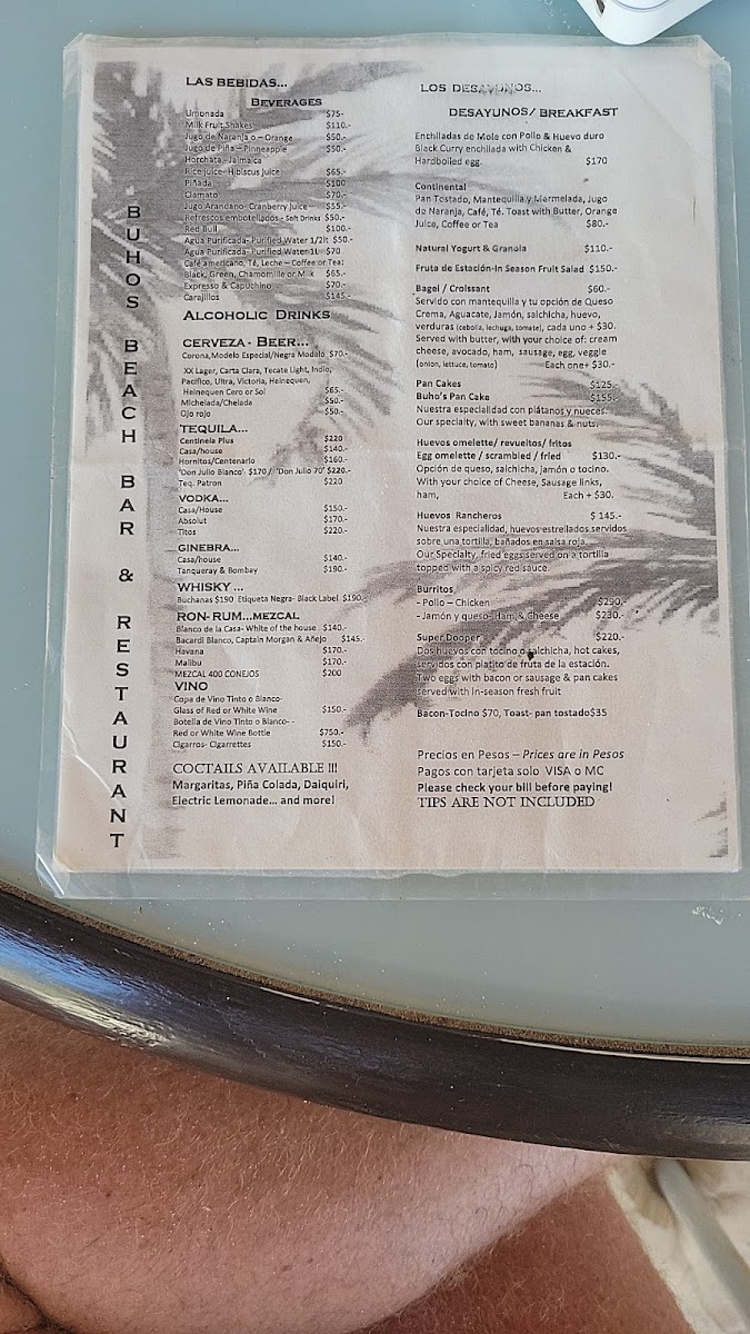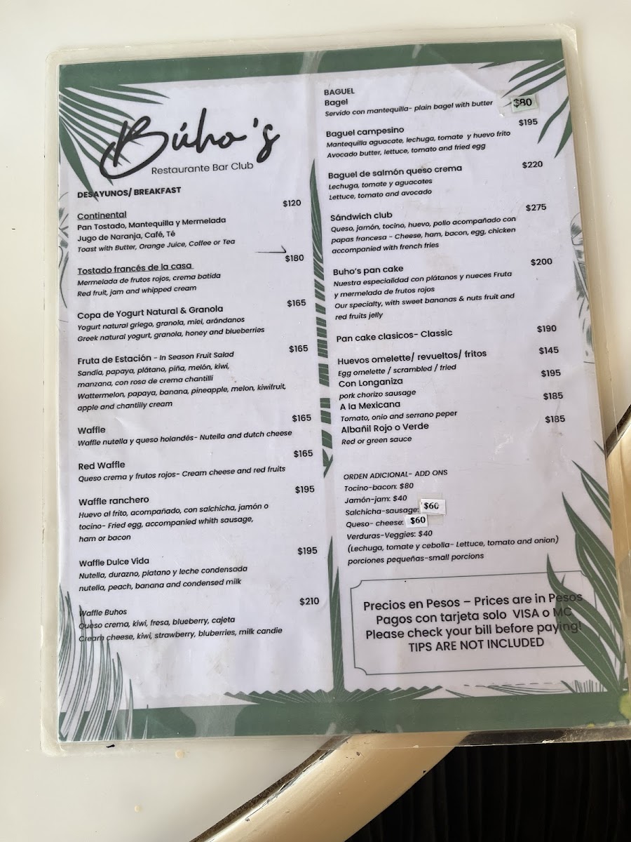Buho’S Beach Bar & Restaurant Menu