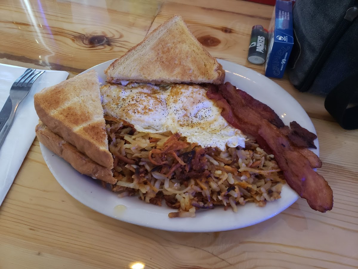 I went there for breakfast with a friend. We both had blueberry pancakes with sausage. They were delicious and the sausage were great too. Coffee was also very good. Definitely a fair price.