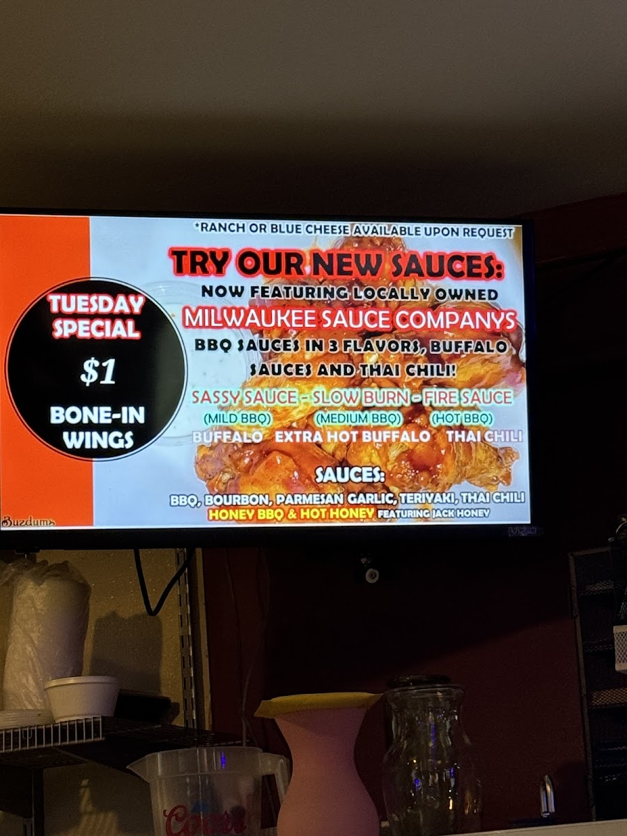 10 jumbo chicken wings served with your choice of sauce & ranch or blue cheese