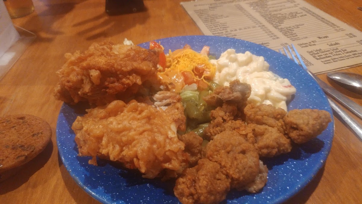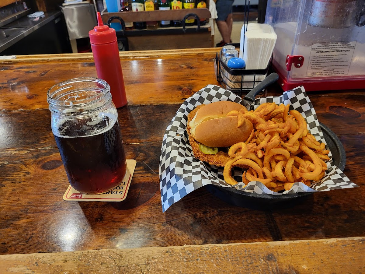Small town vibe. Good eats. We started with a basket of fried livers. They were tasty. Tripple smash burger with the Charleston toppings and a breaded tenderloin sandwich with fries, which we split between us. It was all very good. Will definitely visit again. I want to try the chicken.