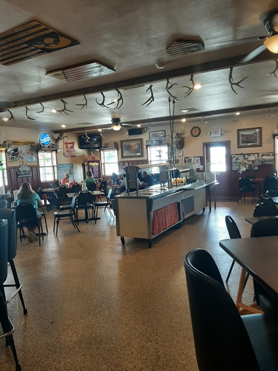 This place has a very country feel to it as you walk into the establishment. It is a bar and grill with a buffet. The food like the Mac and cheese with brisket was just a delicious as the fried chicken and salad bar. The bathroom was clean and cute. The atmosphere is friendly, family oriented and also suitable for a night out with friends. The wait staff is very friendly. Just don't forget to bring your cash or check as the don't accept credit cards though they do have an atm inside.
