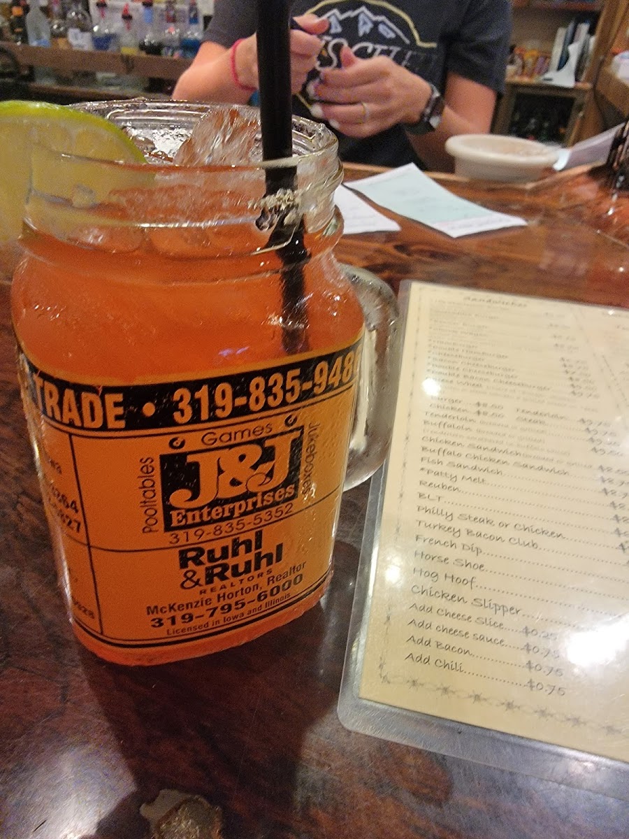 Nice place and good food. Unique atmosphere found in a small town in Iowa. Waitress was helpful with suggestions and checked on us frequently.