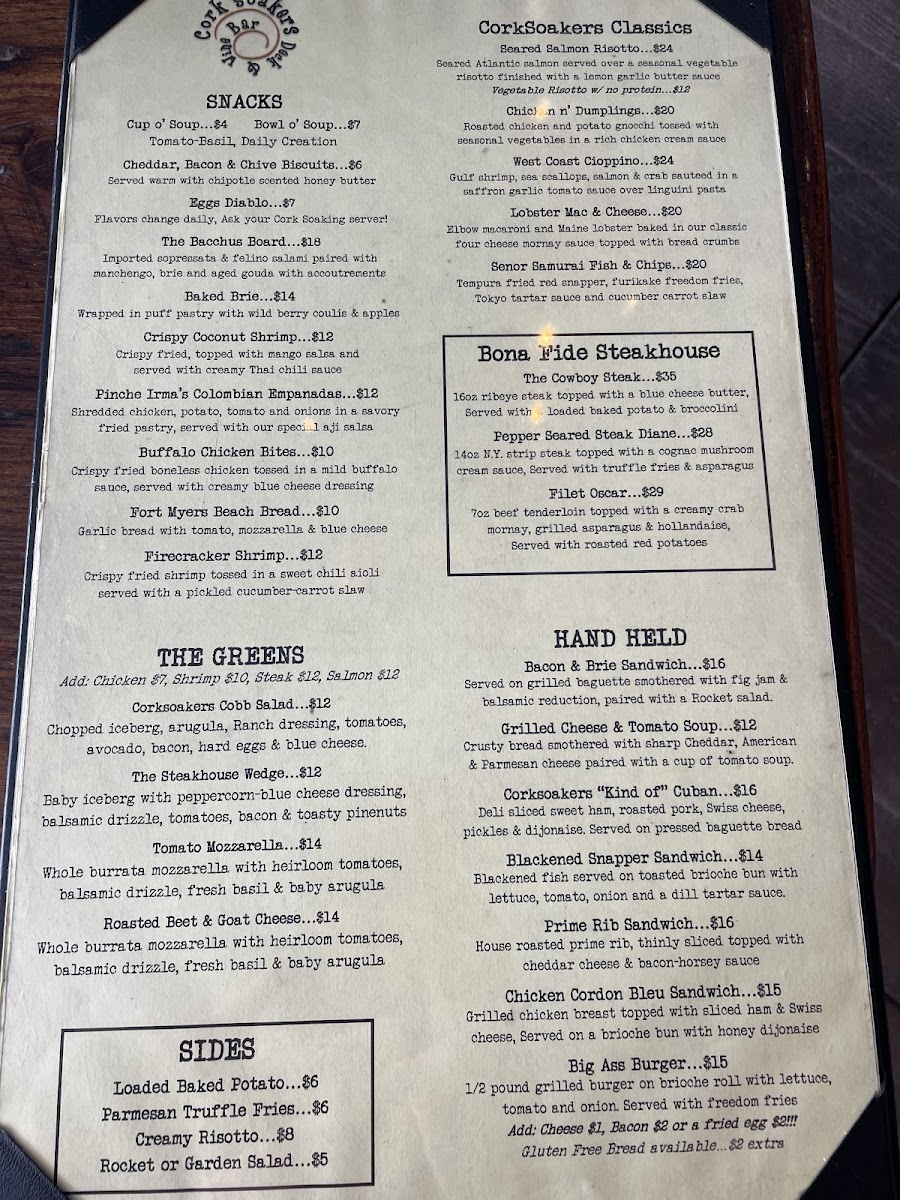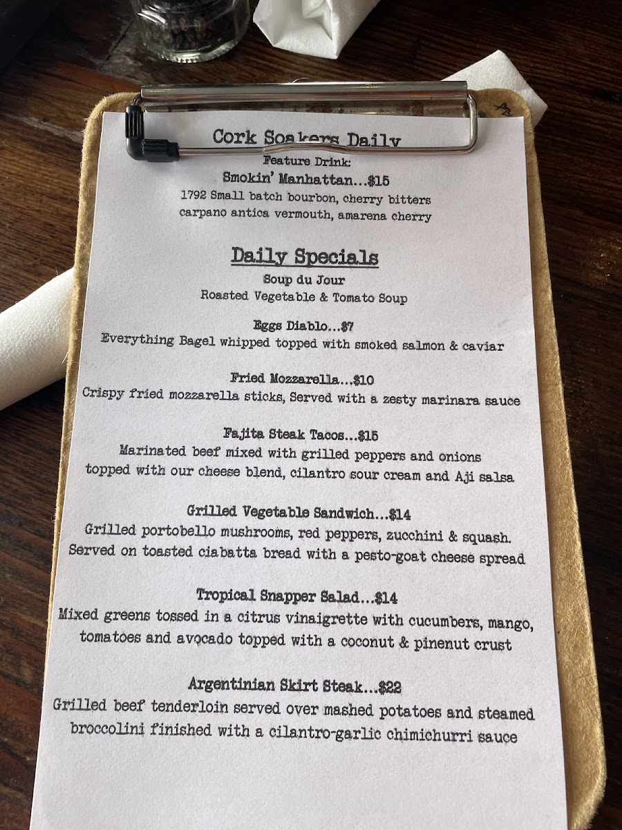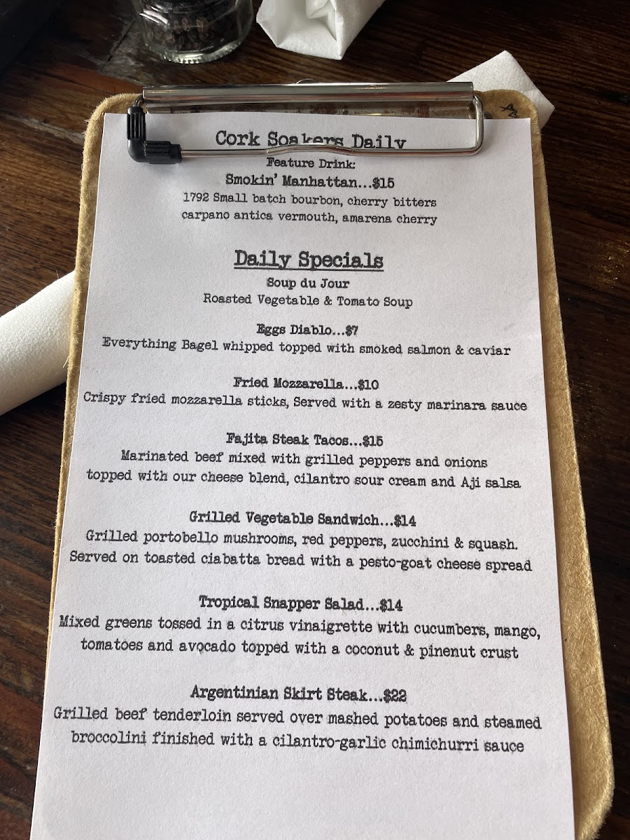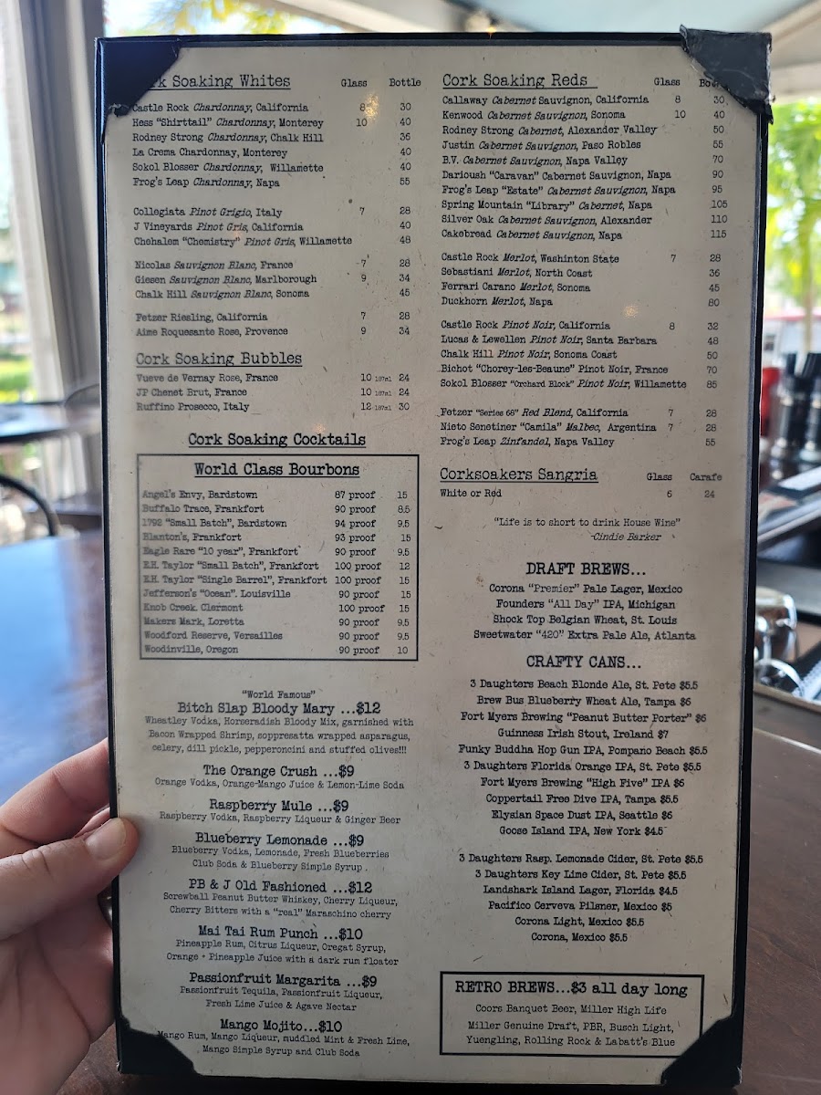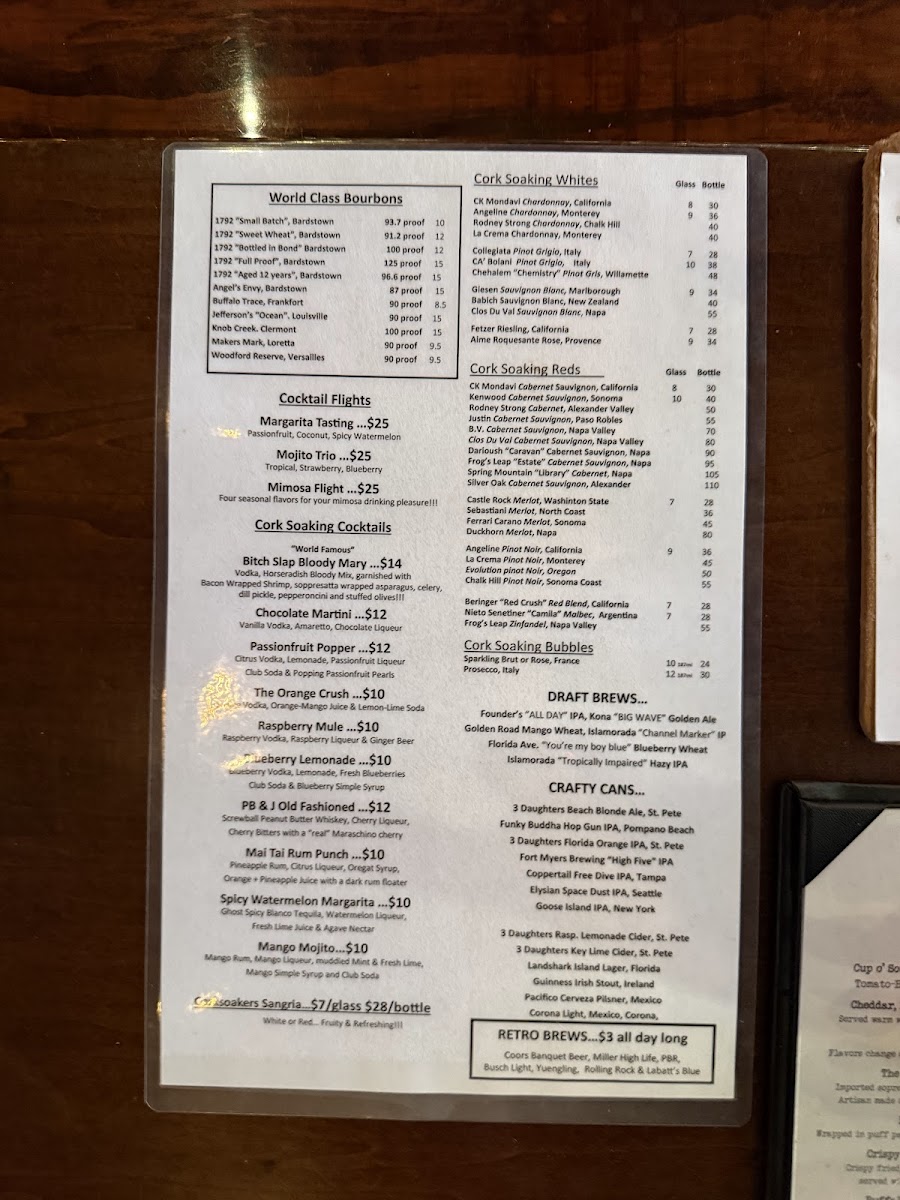 Flavors change daily, ask your cork soaking server!