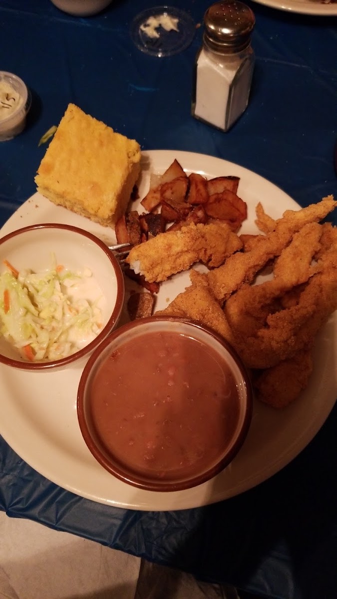 My husband and I stopped here for the first time for lunch on our way to Montauk State Park. The food is absolutely incredible, we had the catfish, homemade cornbread, chicken wings and onion rings. Sounds like standard fare that anyplace could make, but it was probably the best catfish I’ve had in a long time. Every item we had was really good. Prices were absolutely on the very affordable side. Atmosphere is country bar, pool tables, and westerns on the TVs above the bar, expect a large smoking section, although there was a separate non-smoking area available. Staff was very friendly and welcoming to us as very obvious out-of-towners. We’ll be back.