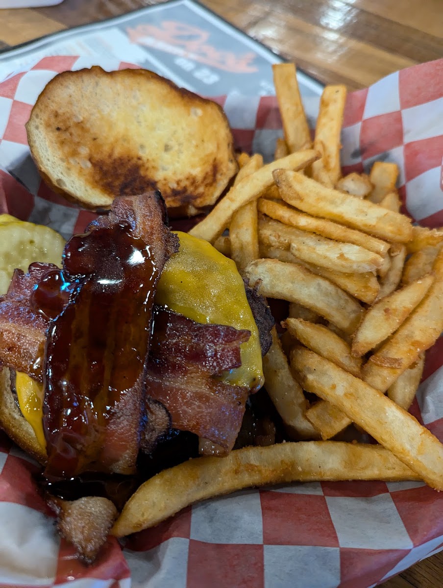 Really cute place. Very friendly service. You definitely need to get the deep fried burger! They should deep fry all the burgers! It was amazing. The rest of the food was okay. They use the world's worst ketchup and advertise it all over the restaurant to make you believe it is a good thing. Luckily the BBQ sauce is good.