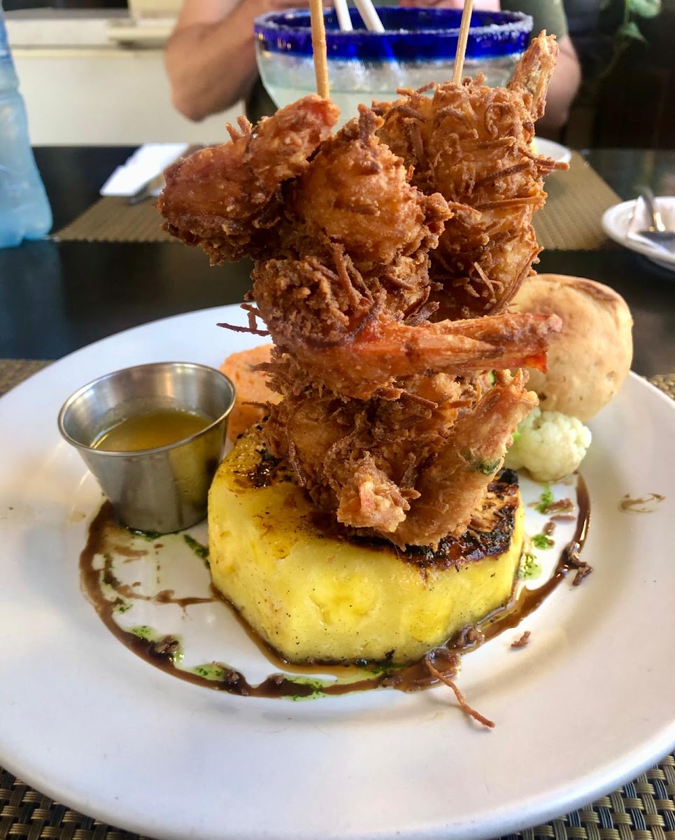 One of the more popular restaurants in town in Cinco Decembre. They have an upstairs with a nice view add downstairs is lovely as well. Really excellent food and large portions. We love their coconut shrimp. It's maybe the very best in town.