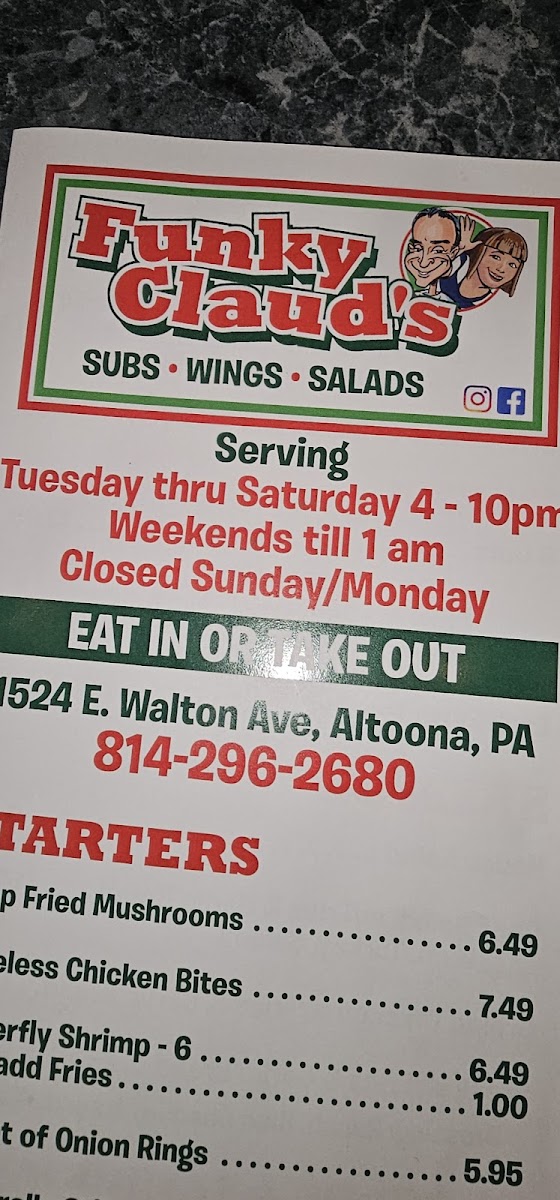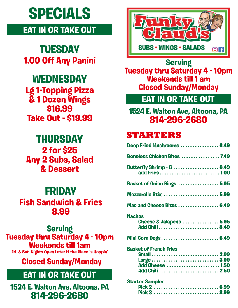Toppings…..$1.50/each: Cheese • Pepperoni • Mushrooms • Onion • Green Pepper • Mild Pepper Rings