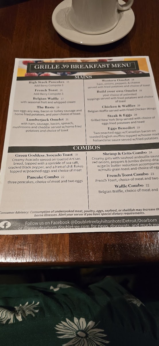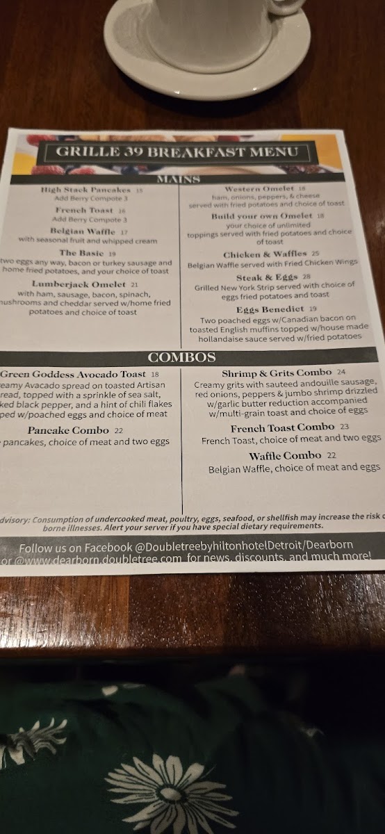 Contempary array of breakfast specialties to include Farm fresh eggs, smoked bacon, sausage, meats, cheeses, breakfast pastries, fresh & dried fruits, hot & cold cereals, Florida orange juice and coffee. Some items rotated daily