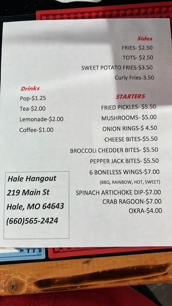 Hale Hangout Local Bar & Grill sits at 219 Main St, Hale, MO 64643, United States. This Bar & Grill has received 28 user reviews. Signature dishes include Okra, Crab Ragoon, Spinach Artichoke Dip, 6 Boneless Wings, and Pepper Jack Bites. Remarkably, the venue does not experience wait times on any day of the week, providing a relaxed atmosphere for enjoying well-known bar and grill favorites. This location is suitable for those looking for quick service and popular casual dishes throughout the week.