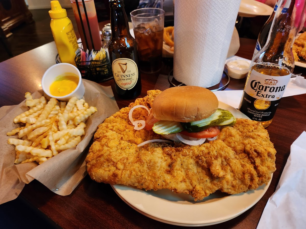 Food is great! The chicken strips are out of this world ! The big hand breaded tenderloin is great. Friendly staff and cold drinks.