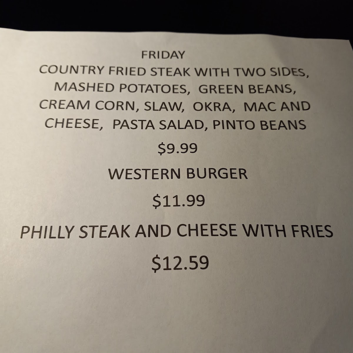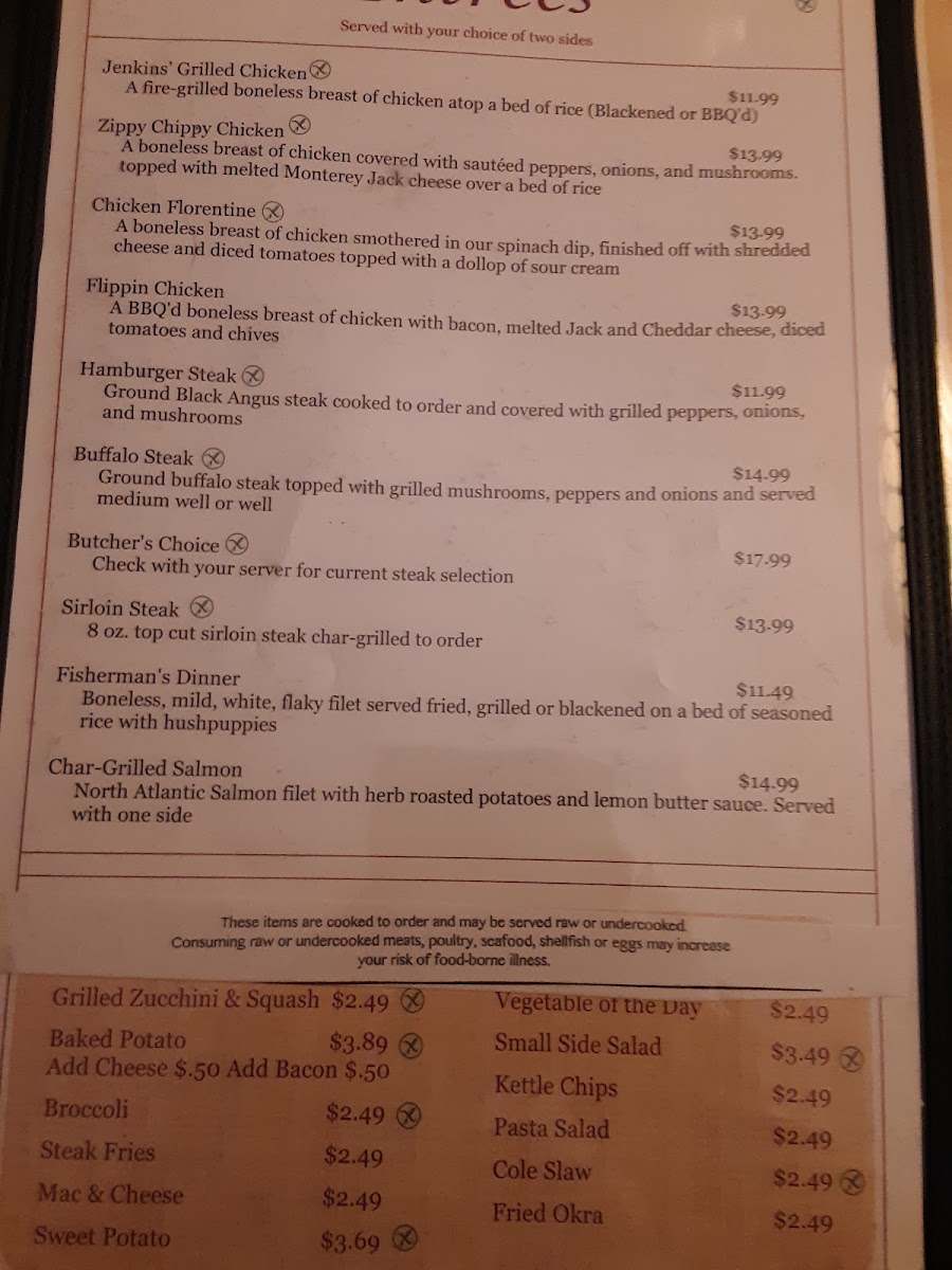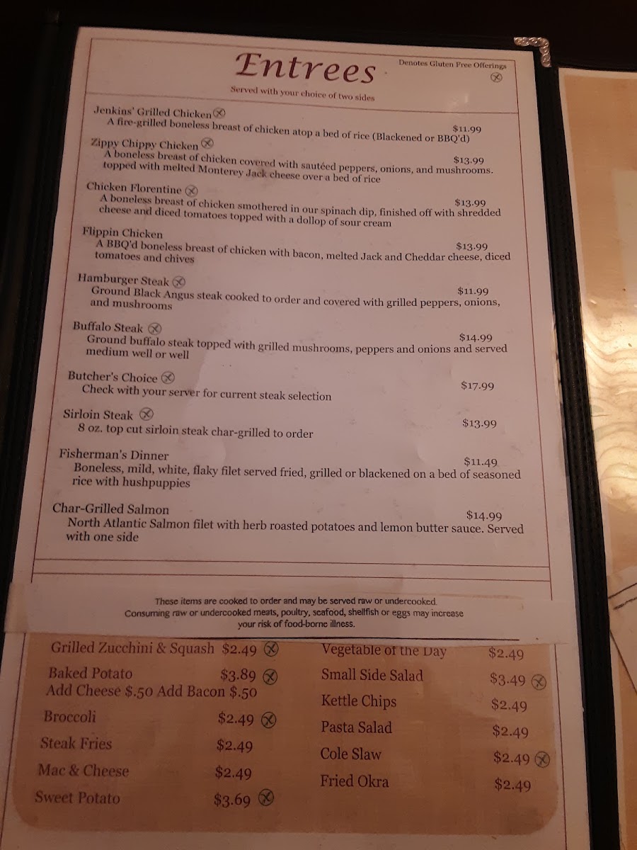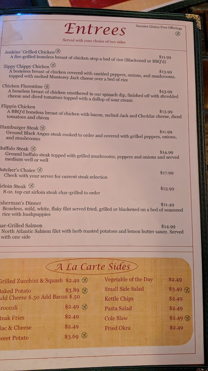 Check with your server for current steak selection.