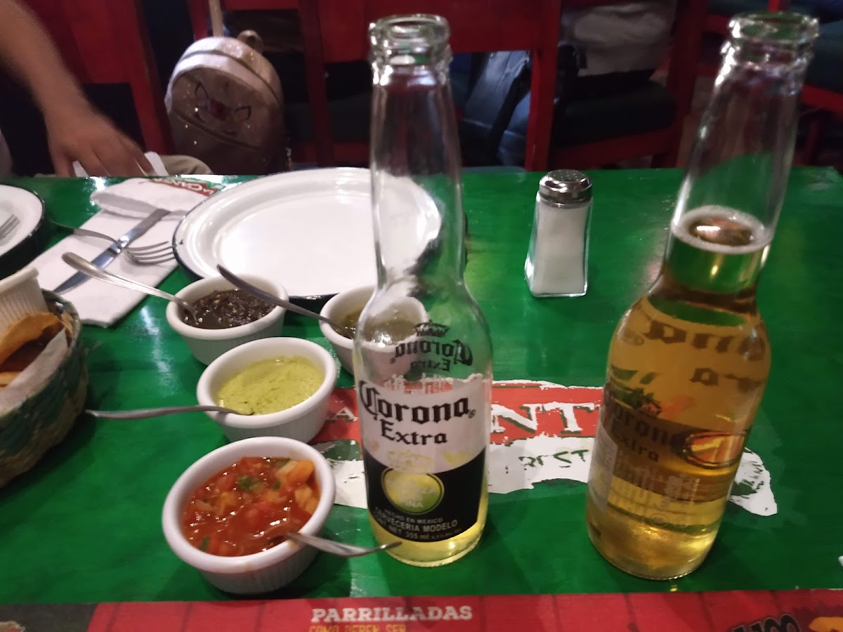 This is a loud bar with good food. They have an English menu. Not sure the time this offer exists is, but it was two for one (2x1) beers at 6:30 pm. An attractive woman came in and sang karaoke while strolling from table to table. They have private security people working there. I imagine the place can get rowdy, but I think they close at 8 PM, based on what I think I interpreted on the wall, and the word precopeo (pre-drinking) in the name of the place. We both had the individual Mar y Tierre Molcajete (surf and turf). Arrachera, shrimp, cactus, avacado and cheese. The guacamole was also tasty. Glad we went after working in a nearby plant. They do not split the bill. They did accept Visa. Edit, here 4 years later, they are definitely open past 8 pm on a Saturday night.