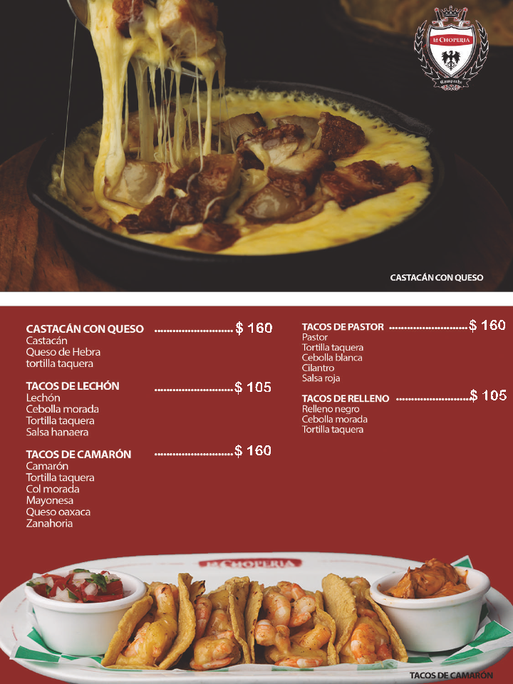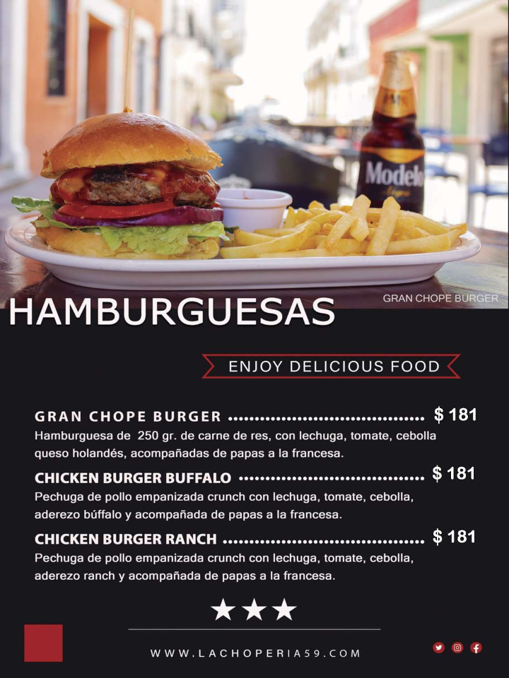 Carne de res, chile poblano, cebolla, tocino y delicioso queso.