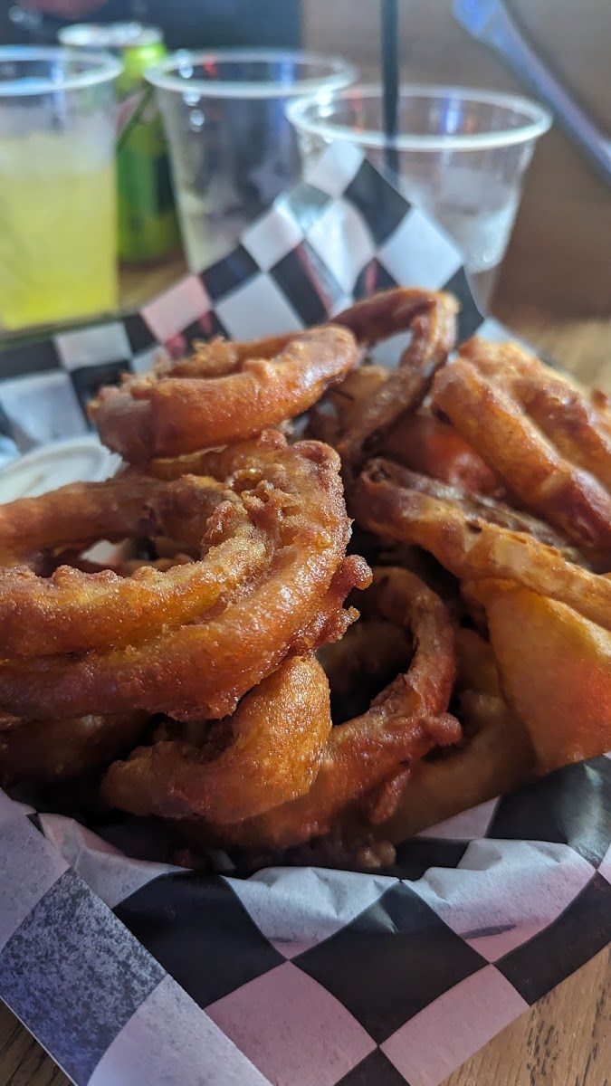 Stopped by here while cruising through the cornfields on our motorcycle. One of those awesome hole in the wall places. Outside bar was the perfect spot for an ice cold beer. The onion rings were so good I brought my daughter back the following weekend. She is an onion rings crazed teenager. Additionally, the pricing is off the charts fair. What a great experience!