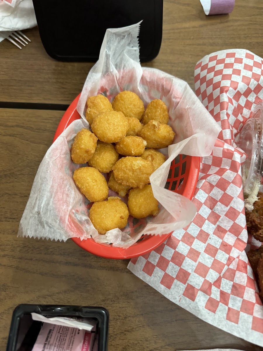 Excellent Fried Walleye!!! Along with a baked potato, salad, dinner roll and slaw. Delicious. $18.00 and well worth it. 2 nice filets of walleye. Every Friday! Don't miss out on an excellent meal and service !!! I give the atmosphere a 4 because of seating.