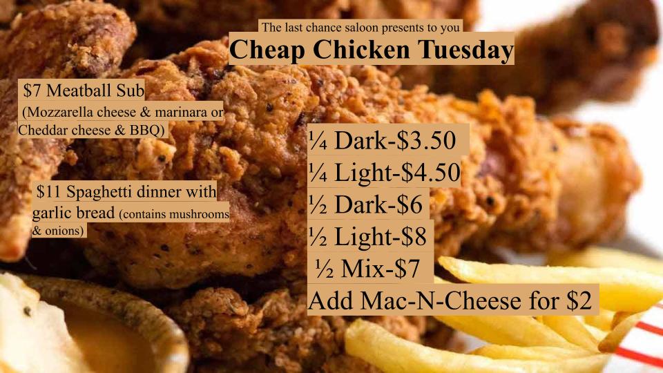 Lunch meatball sub Cheap Chicken nite after 4PM