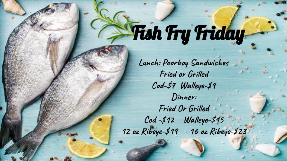 Lunch Poorboys ( cod or walleye) Fish dinner after 5PM