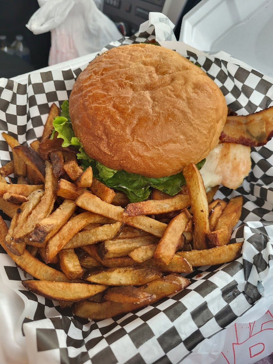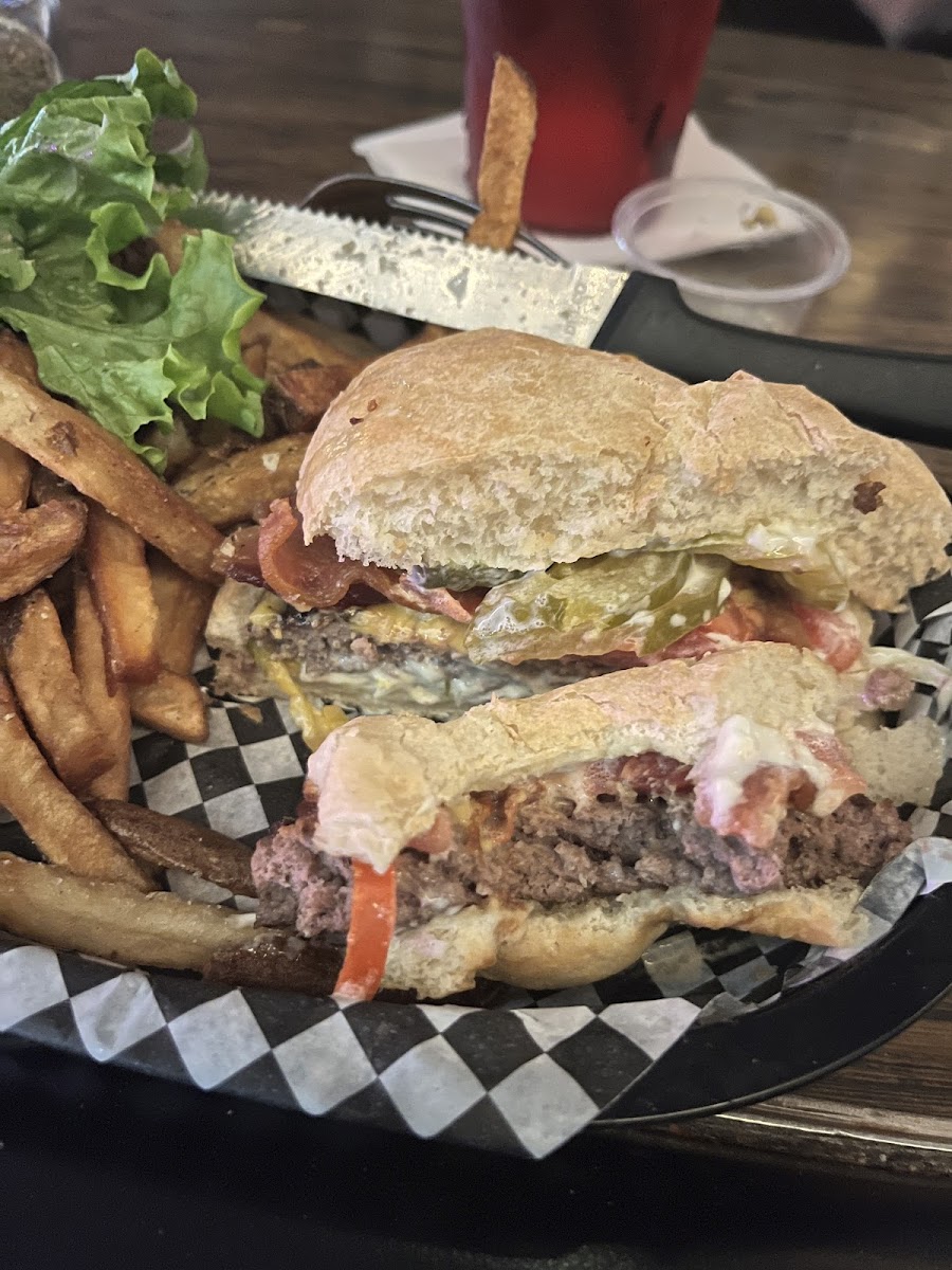 I've been going here for burgers ever since we moved to Anchorage is 2007. Some of the best burgers in town. Last night, after an extremely tough day I ordered a bloody Mary and it was bomb! A lil spicy, tomatoey, mmm. Delicious. I also absolutely love their homemade fries. The only place I know if in town that makes fresh fries, not frozen. Usually the day time atmosphere is chill. It can get hopping at night on the weekends. Bartenders are great and they do not put up with racist language or rowdy customers.