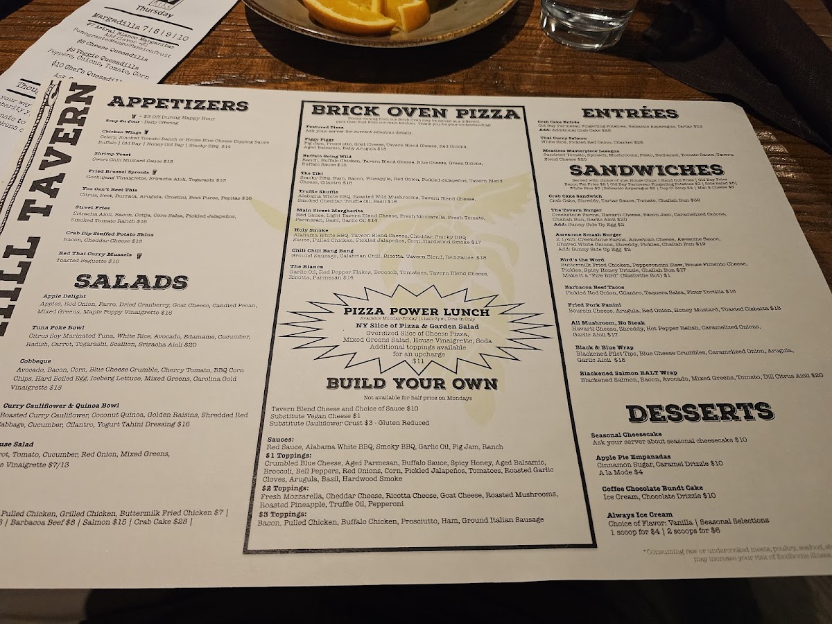 Alabama White BBQ, Tavern Blend Cheese, Cheddar, Smoky BBQ, Pulled Chicken, Pickled Jalapeno, Corn, Hardwood Smoke