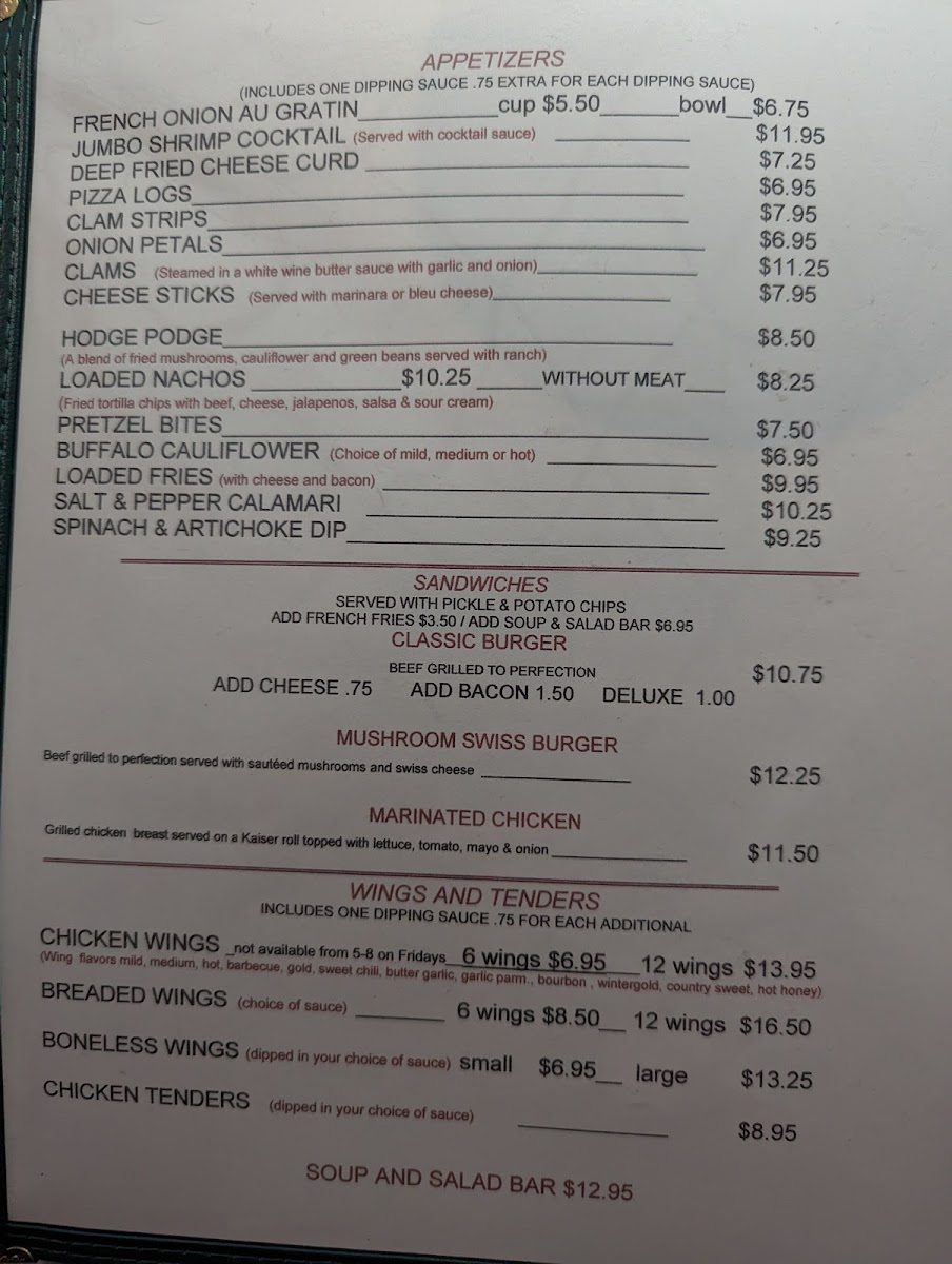 Off Duty, Inc. Menu