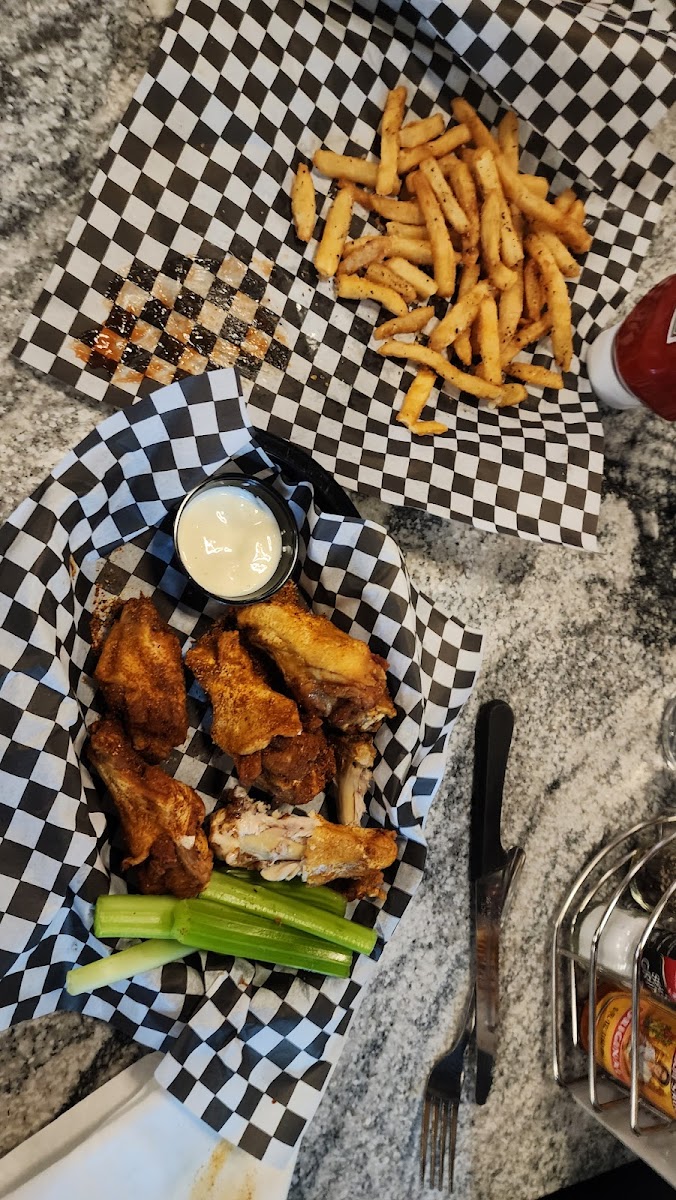 I hate to be the first four star review, but I have to be honest. So, for starters, the food is fantastic. I absolutely love their buffalo wings, which have thick meat, a nice crunchy texture, and perfect flavor for buffalo sauce. My mom got their catfish, which she said was fairly good, and my wife enjoyed her burger and loved her fries! The atmosphere is lively and modern, with several TVs, two pool tables, and a pretty sweet modern jukebox. So, why the lack of a star? The service was very, very--slow. It took us around 10 minutes to get greeted at all, and another ten to even get drink orders in. The kitchen took an exceedingly long time to bring out our food--roughly 30 to 40 minutes. I noticed most of the dining room was waiting as we were. I noted a few customers came in, weren't greeted, and after around 5-10 minutes left the restaurant, which is unfortunate. Now, I know the place is new and trying to find its groove, and get the hang of things, but there is slow, and then there is incredibly slow. From seat to finish, it took us around an hour and forty five minutes. This wasn't us loafing around, it was getting things as quickly as we could. Our drinks never got refilled until we had finished eating. We had to call out to the already overworking bartender to get our to go boxes and pay out. It was one of the longest experiences we've had dining out, and that includes more fine dining situations. I would love to come back at a later time and update this review if the service gets into the better swing of things or they hire more staff. Normally I would be more forgiving with this sort of thing, but it was just so difficult to get service I can't merit giving it 5 stars yet. I want to note the staff looked like they were working very, very hard. This review is not a take away at all from their efforts, it just seems like they need more help or a more efficient set up for them and the establishment to truly excel. I genuinely believe if they can hammer out these kinks, they would be one of the best places to eat around the metro. ---- Overall, if you want great food and don't mind a very long wait, or you want to just hang out for two or three hours, I believe this would be a good spot for it! However, don't come hungry, and be prepared to wait a very long time and enjoy the cool atmosphere.