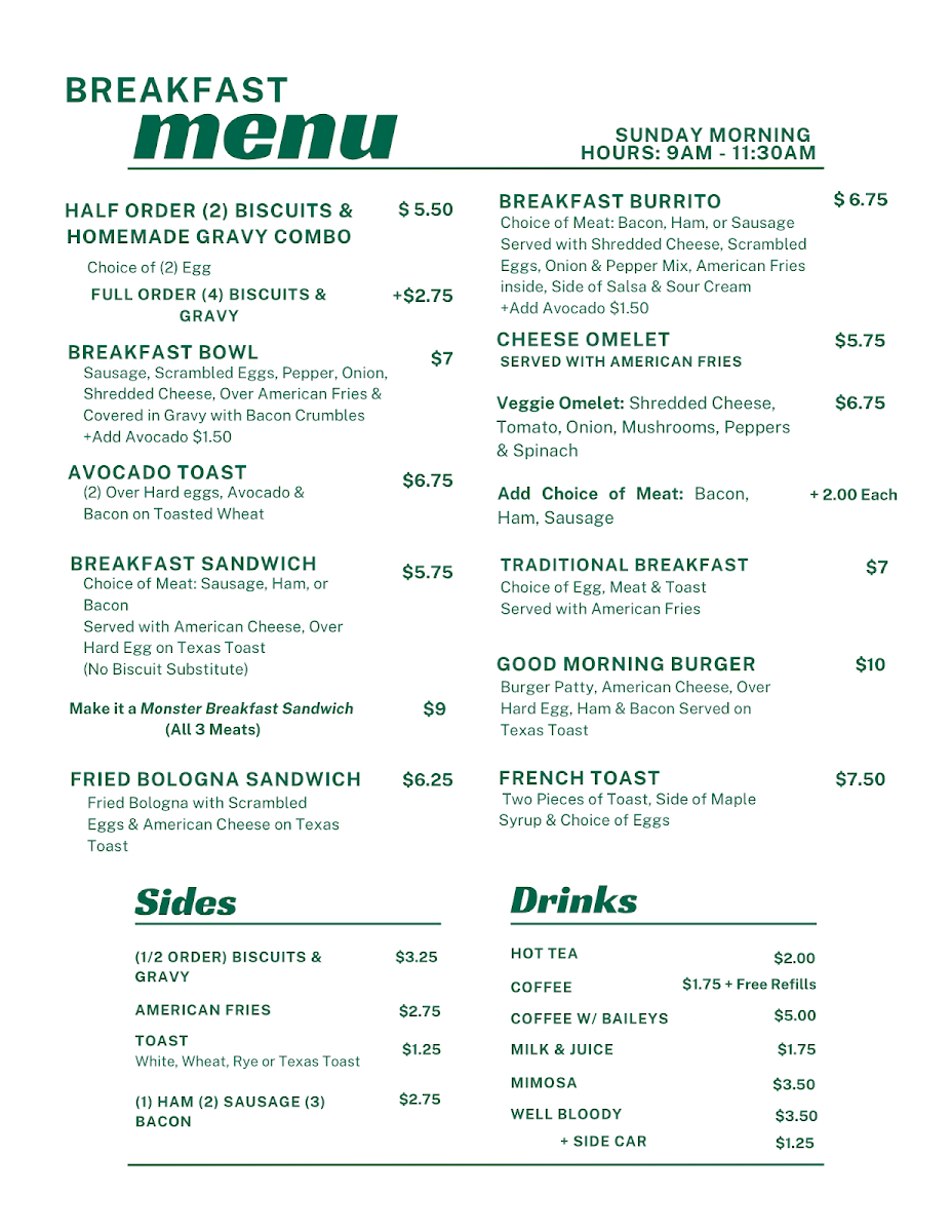 $2 add Bacon, ham or sausage