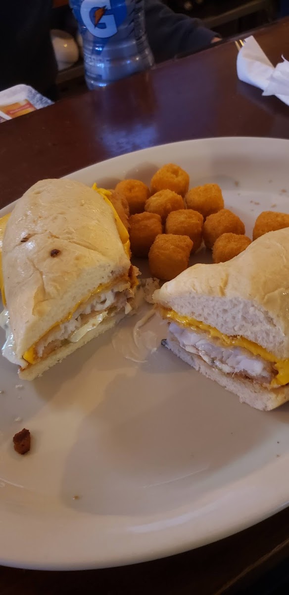 The atmosphere was quite friendly. The staff was very helpful. We were taken care of right away. The food was delicious, chicken noodles soup, cheeseburger and fries (nice and crispy), my husband had a fish sandwich and a veggie appetizer. HE said it was very good.