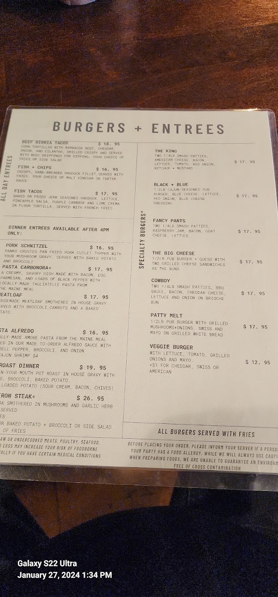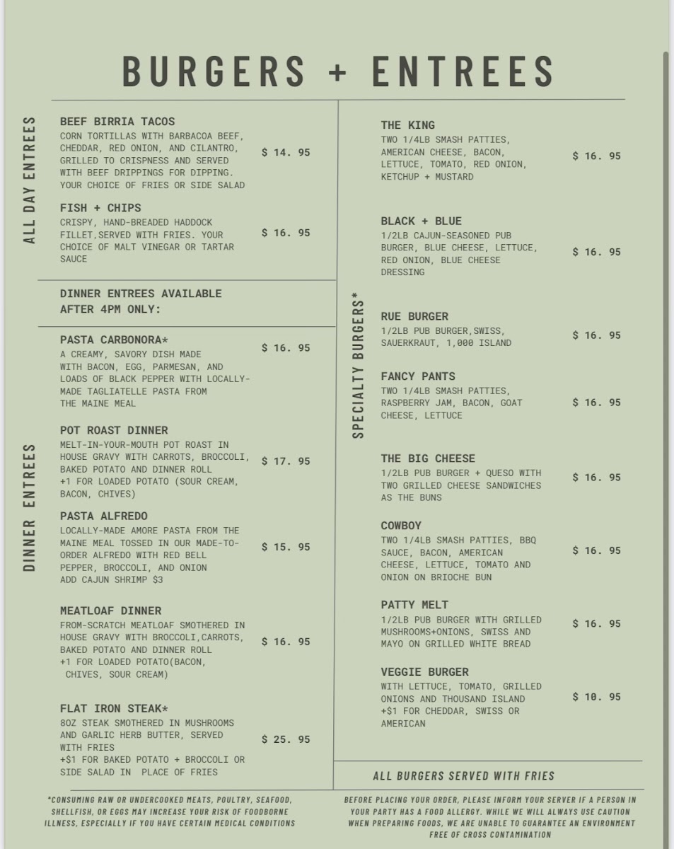 Burgers + Entrees