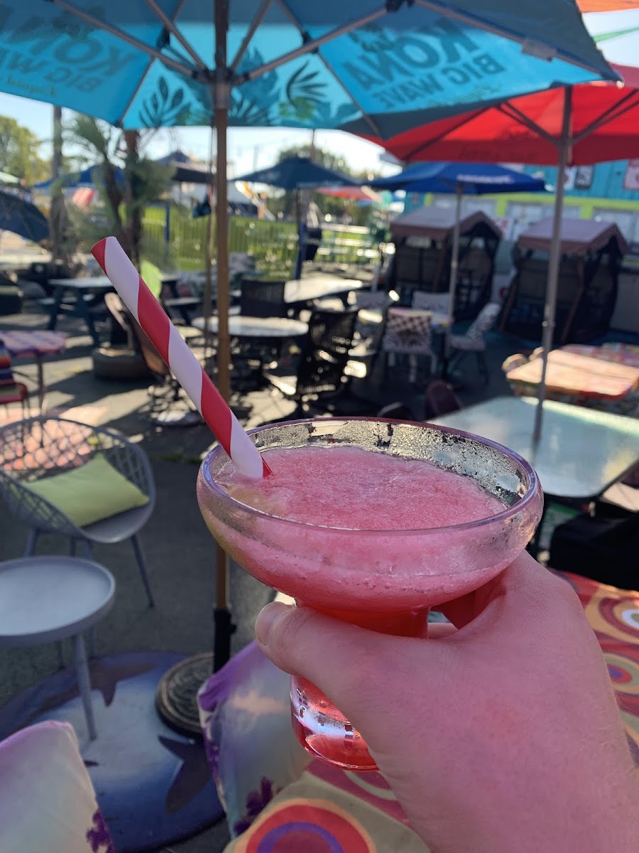 This place has it all - close to the water, lounging cushioned chairs where you can sit all day and listen to music, drink, eat and watch the 2 foot tall bloody marys that pack a full day of food pass by until you find the courage to order one for yourself...... and the people who work here are awesome and ON IT!! Definitely will be a must stop when in that area or deciding where to go on a road trip! Had a great day at Smashed on the Rocks!!!