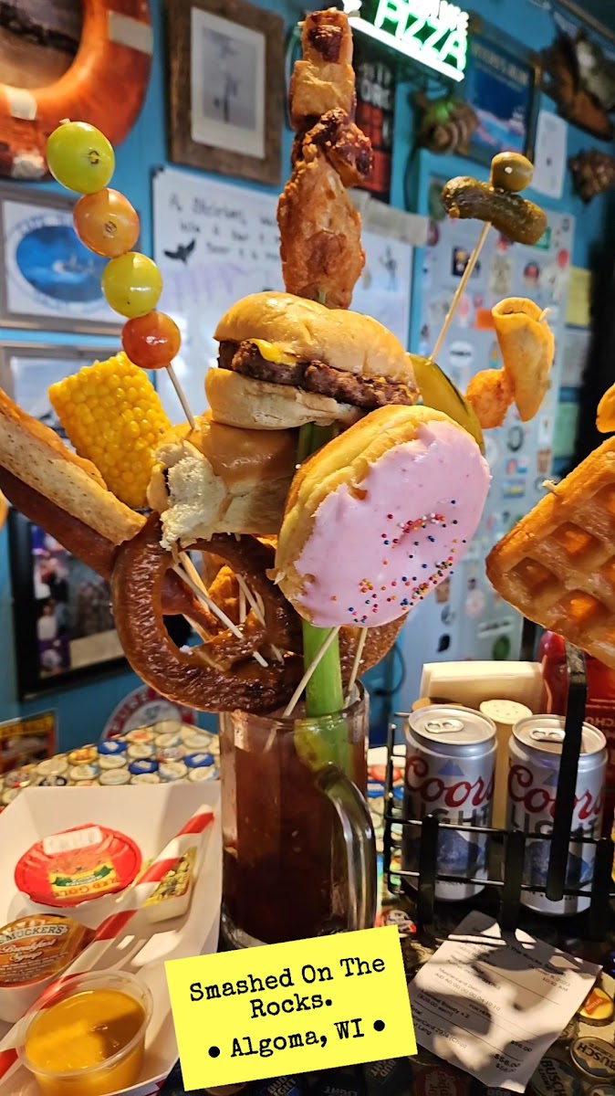Smashed On The Rocks located at 70 Church St, Algoma, WI 54201, United States, is a Bar & Grill that has accrued 470 reviews. The venue typically experiences peak wait times on Mondays with waits up to 15 minutes from 11:00 AM to 2:00 PM, while other days generally have no wait. Popular dishes include the Famous Loaded Bloody Mary, Beer, Chicken Wings, Kiddie Cocktail, and Burger and Fries, making it a casual spot for those craving classic bar and grill fare.