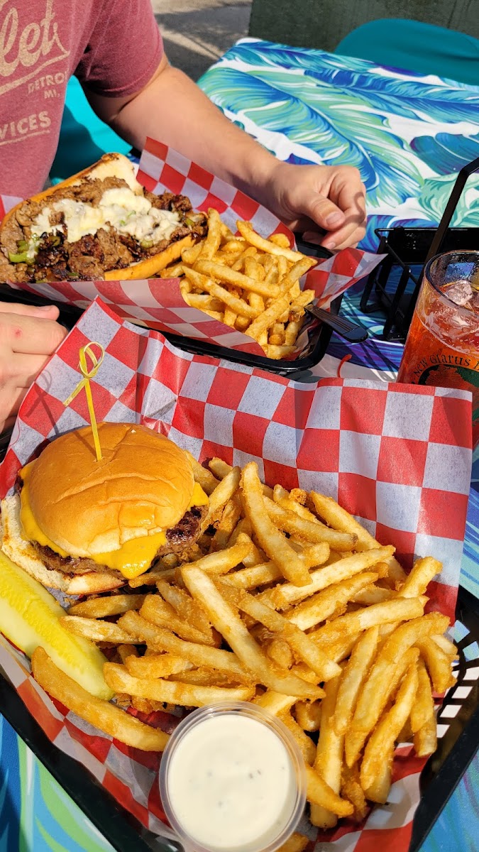 Comfortable setting by the water, easy access quick and friendly service, cheese curds and french fries were excellent, burger was good enough, but not above average. Very quiet night with few people. Live music during the days on weekends, but not in the evening we were there, but appeared to be an excellent venue for that with a local feel and laid back vibe.