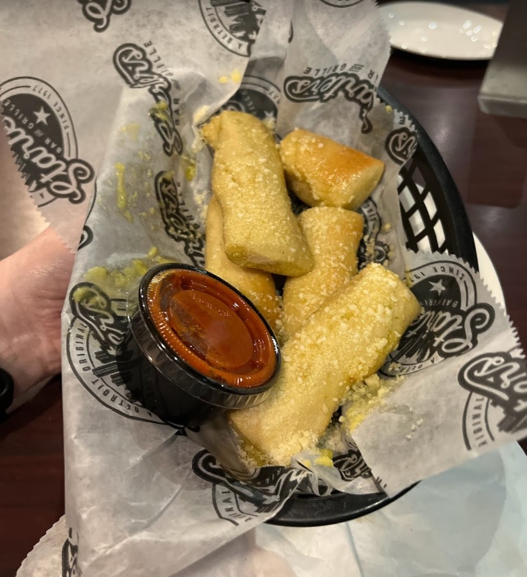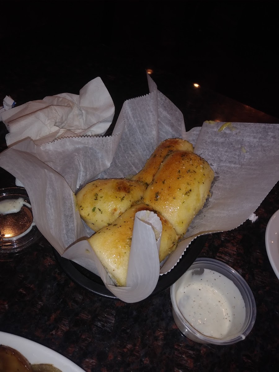 THEY BREAD ! me and my lady on Valentine's Day and had a great experience (like always) . I forgot the waitress name but she did her thang... Food was fresh and hot and it came out fast. THEY BREAD ! The full pricing is great, especially for all the food that you get. Drinks were strong. parking is good. Oh yeah and THEY BREAD amazing