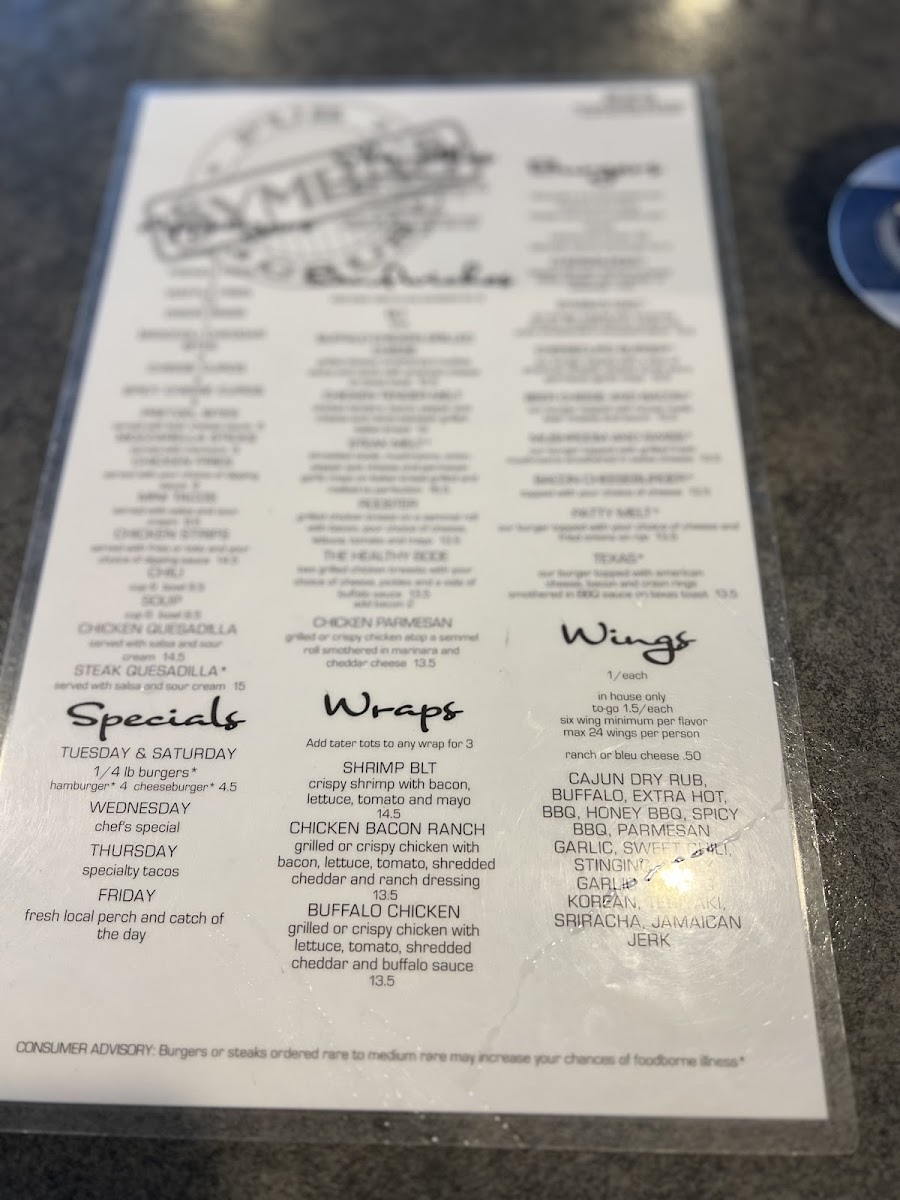 Symba's Pub & Grub is located at 2334 Velp Ave, Green Bay, WI 54303. This Bar & Grill has received 294 user reviews. The menu offers a variety of dishes with a total menu count reflecting a broad selection. Featured items include the Cajun Shrimp Wrap and Miller Lite, making it a spot for casual dining and drinks.
