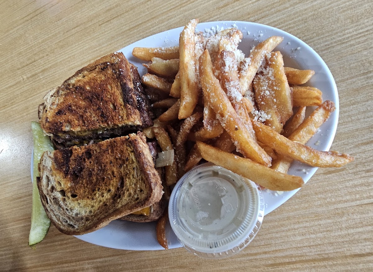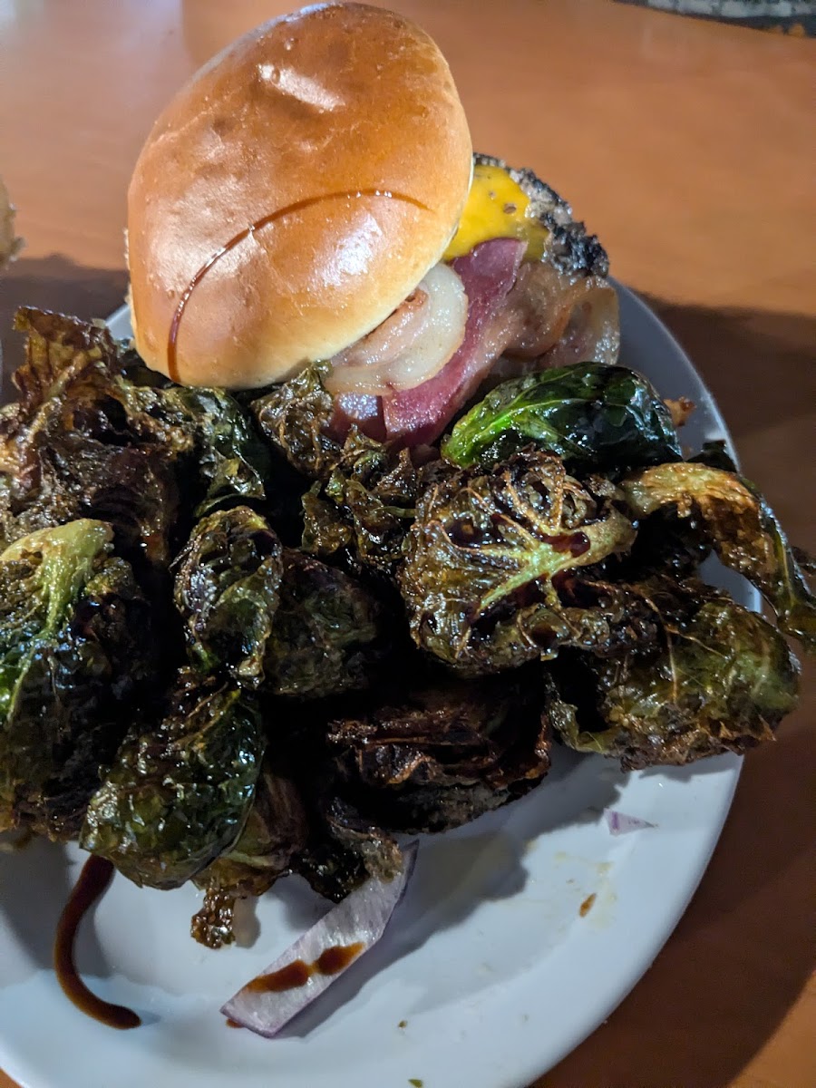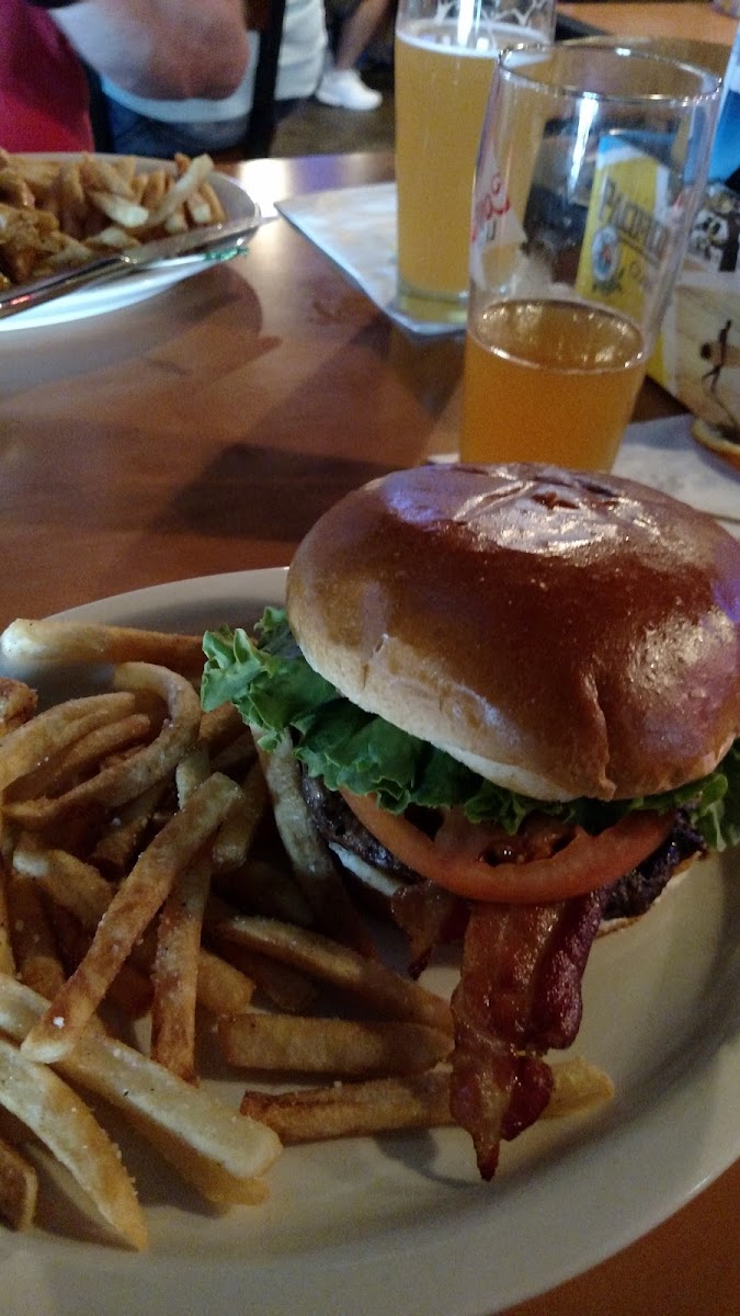 The burger and fried mushrooms were great! Service can be a little slow, even when there are only a few people at the bar, but it's a good spot to stop in for food and a couple drinks. There are always plenty of tables open and tvs on every wall to watch the game.