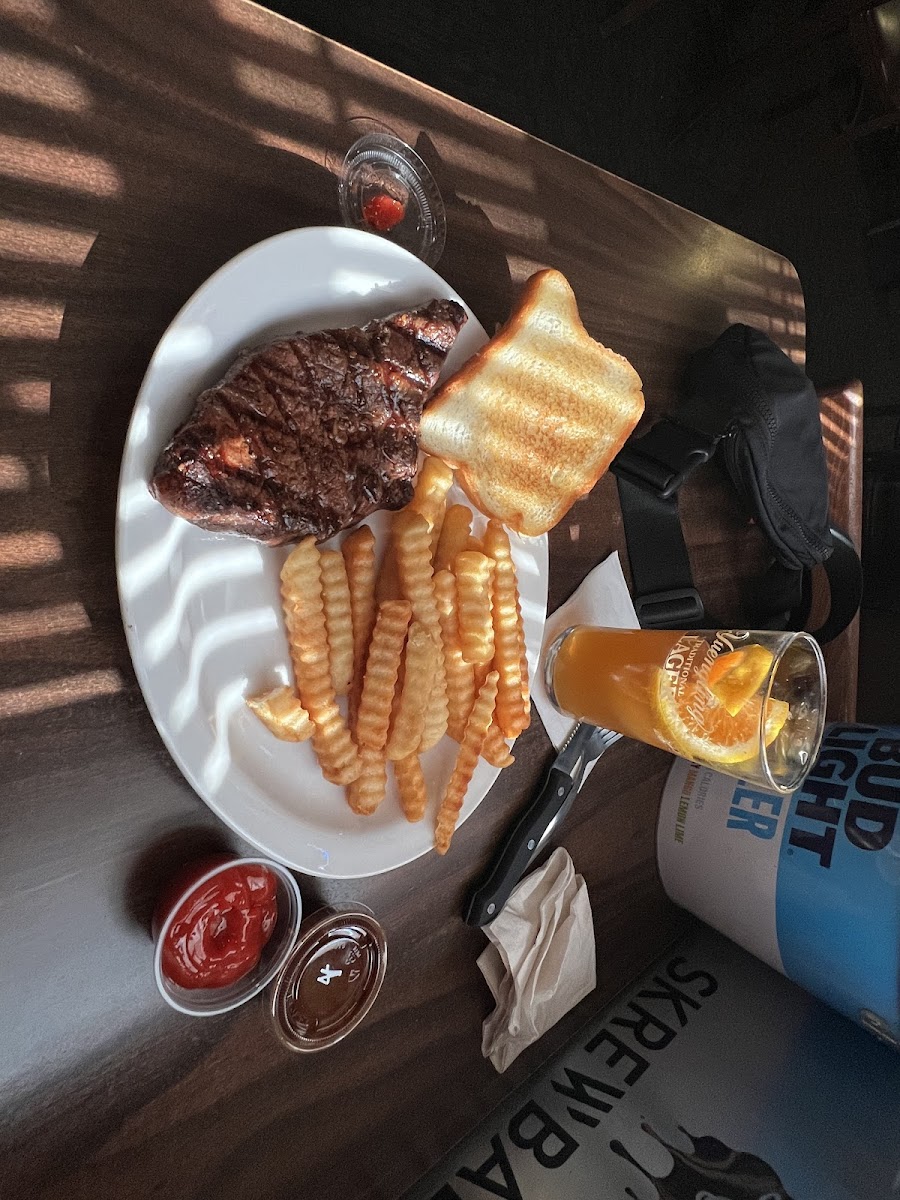 I ordered the ribeye steak dinner. Which comes with a salad, baked potato and a slice of garlic bread. My server was top notch, very experienced and kind. That's more than what other places have in the same class of business. I enjoyed my time here. Friday's are a good night to be here. They have karaoke that starts at 930 and ends at 1am. I highly recommend it here. The owner is kind but stern so don't start trouble and keep your troubles outside. The owner will have you removed so do the owner a favor and all the patrons and just enjoy your time. Everyone works hard here so tip your servers well they work hard for you.