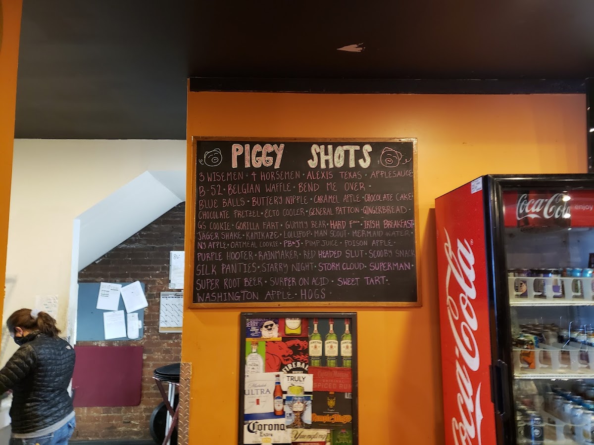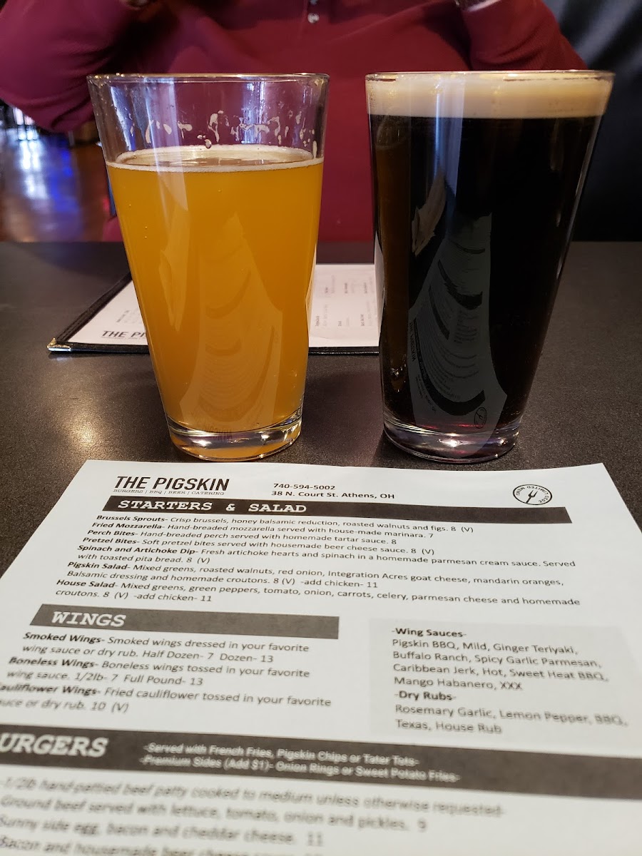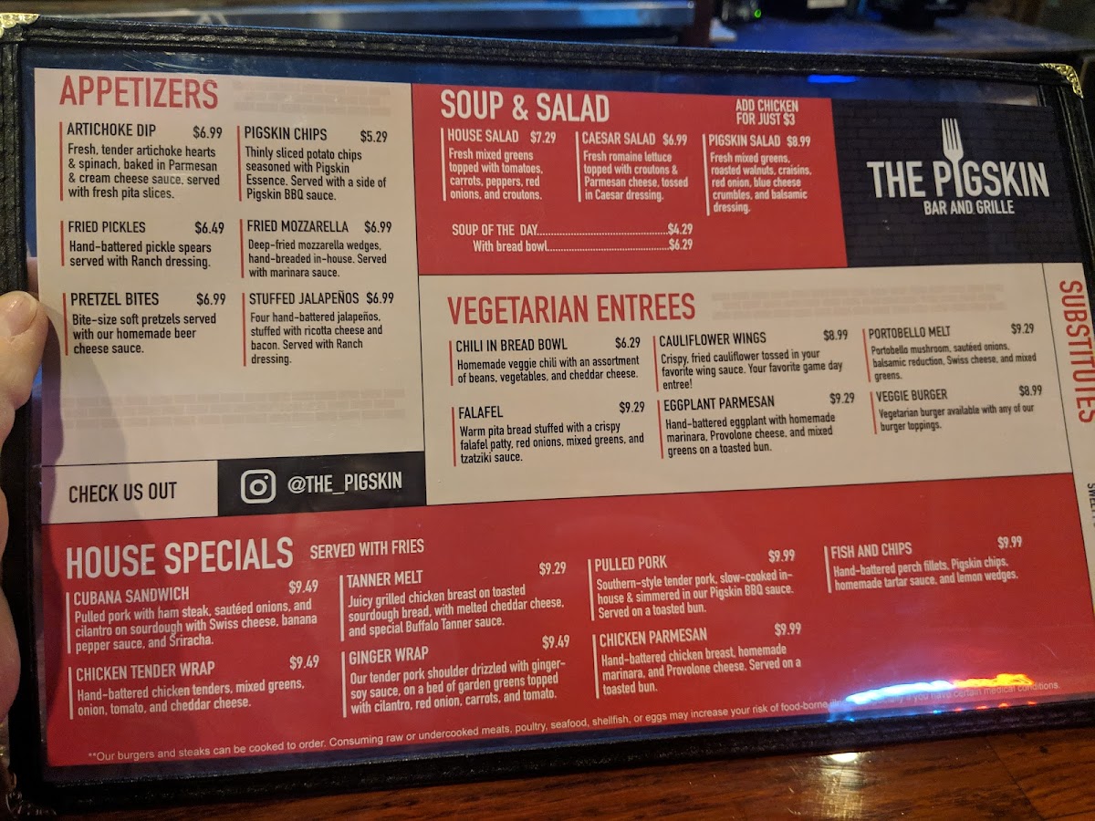 our hickory smoked baby back ribs so tender they slide right off the bone, smothered with the pigskins own bbq sauce and served with your choice of two sides.