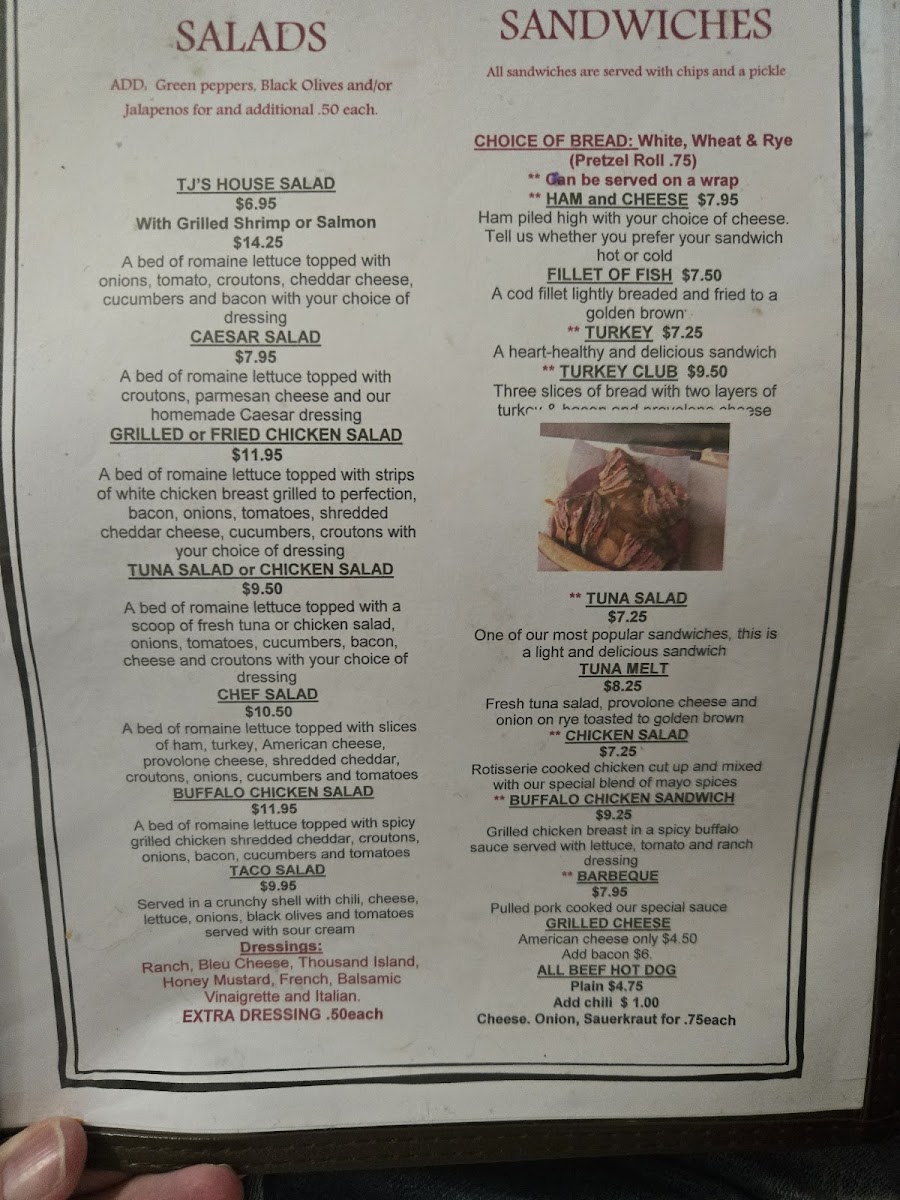 Fresh tuna salad, provolone cheese, and onion on rye toasted to a golden brown