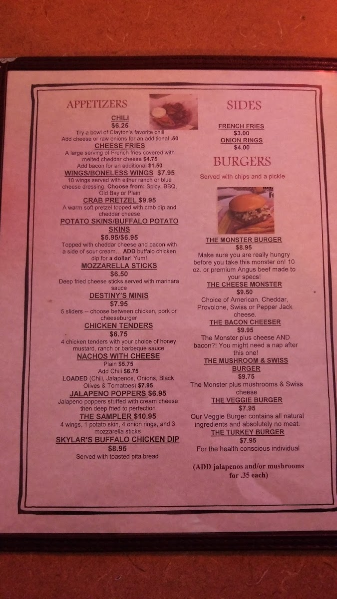 4 wings, 2 potato skin, 4 onion rings, and 3 mozzarella sticks