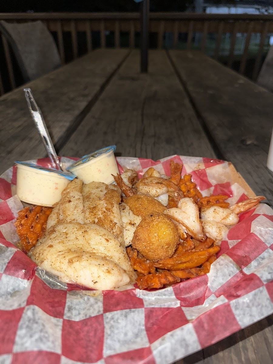 Outdoor dining that overlooks Lake Livingston. Super nice people. Food was very good. Not sure about the bar atmosphere we went during the day.