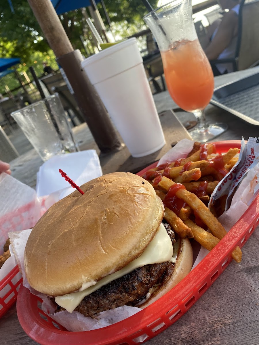 The burgers are fresh and delicious! We were passing through from Arkansas. Megan is an excellent server! The deck and atmosphere are great!