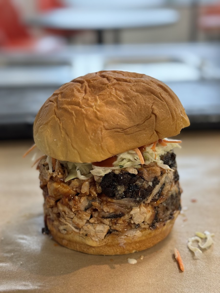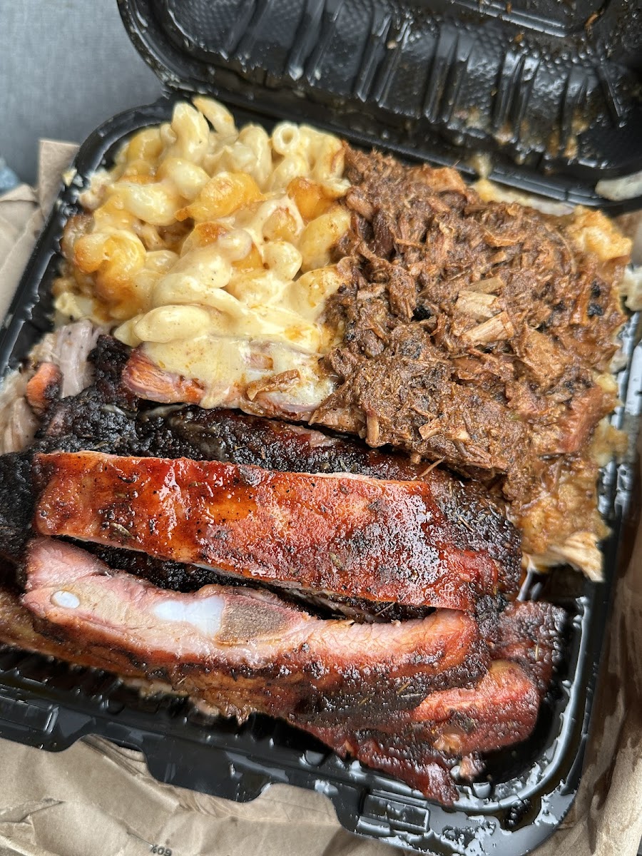 I ordered the BBQ Trifecta with ribs, smoked chicken, and Carolina pork, with garlic mashed potatoes and mac & cheese on the side and everything was outstanding. The ribs were tender and packed with flavor, the smoked chicken was juicy with just the right amount of smokiness and the Carolina pork was perfectly seasoned and pulled. You can tell the meats were smoked with care, not rushed. The sides were just as impressive. The garlic mashed potatoes were creamy and rich, and the mac & cheese was classic comfort food done right. Overall, the food was absolutely delicious and well worth it. If you’re looking for authentic BBQ, generous portions, and food that actually lives up to the hype, this spot is a must try. I’ll definitely be coming back to try more off the menu.