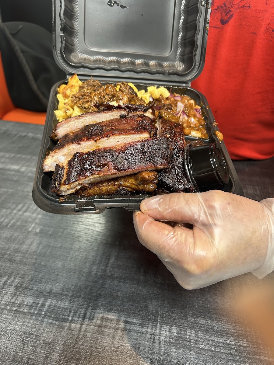 Food made me salivate, I ate way too much because it was so good. The ribs and pork were super tender and flavorful. The slaw was my favorite side, brings some freshness to the meats. Owner was very kind and the portion sizes are generous. The cornbread was huge, half the size of the platter itself . Highly recommended this place!!