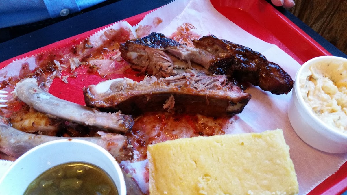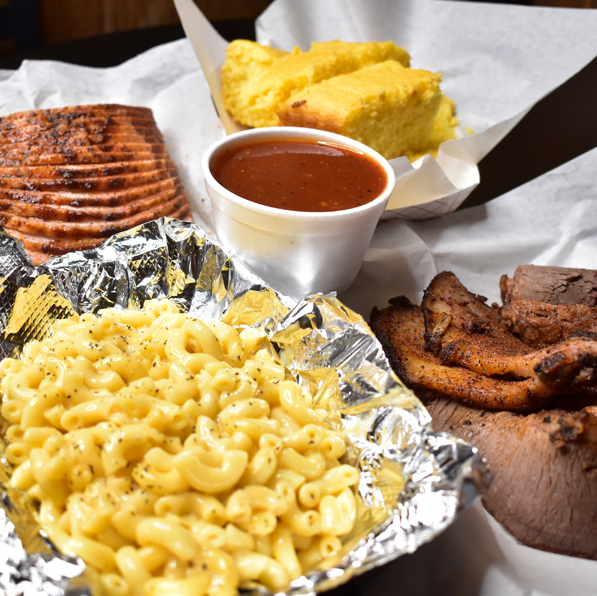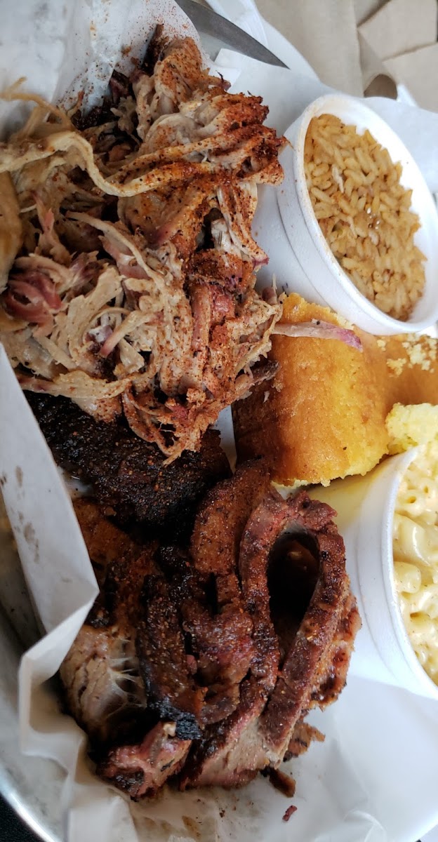Love the beef brisket and the ribs. All the sides are good as well. My favorite place for BBQ.