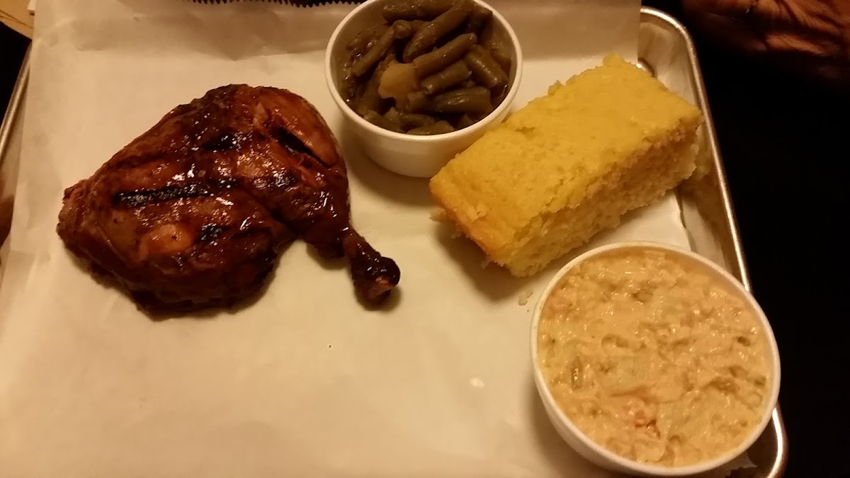 Service was a little slow today, but to their credit, they are swamped with holiday pre-orders right now. We didn't mind the wait. The food was delicious, as always. We had the Memphis Mac, cornbread, and baked beans sandwich. Everything was so good!